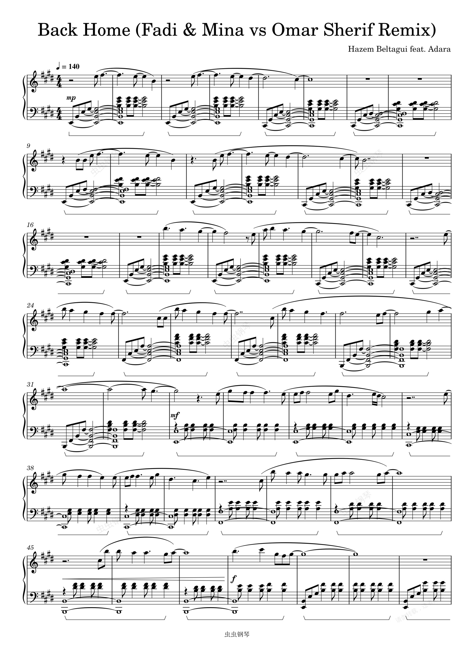 钢琴谱:Back Home-Hazem Beltagui/Adara