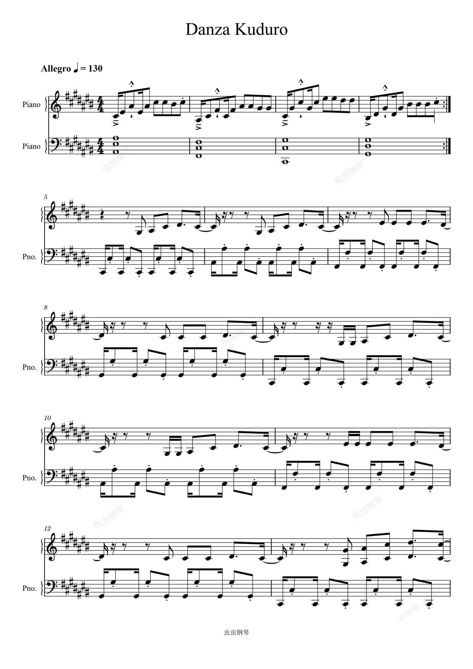 钢琴谱:Danza Kuduro-Don Omar/Lucenzo