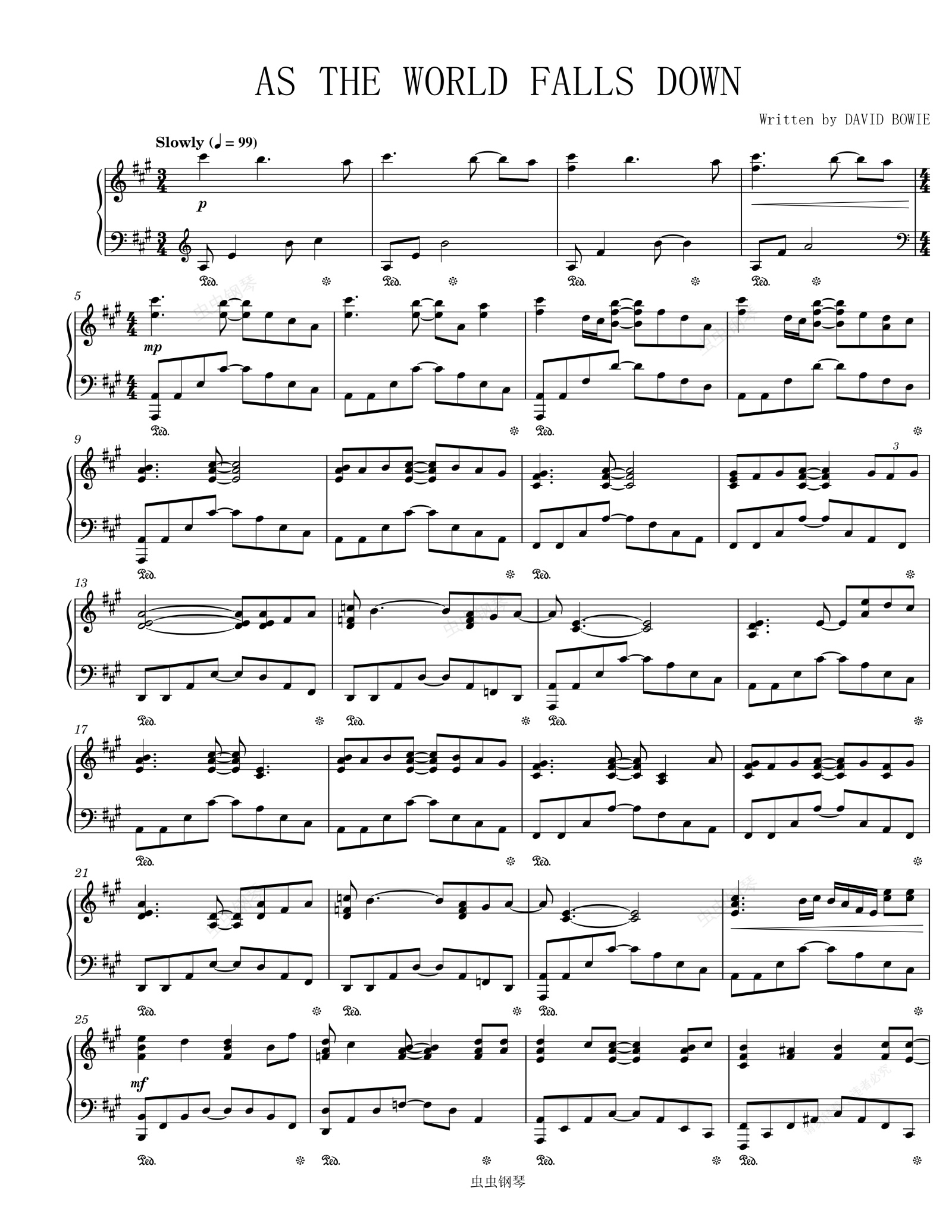 钢琴谱:As The World Falls Down-David Bowie