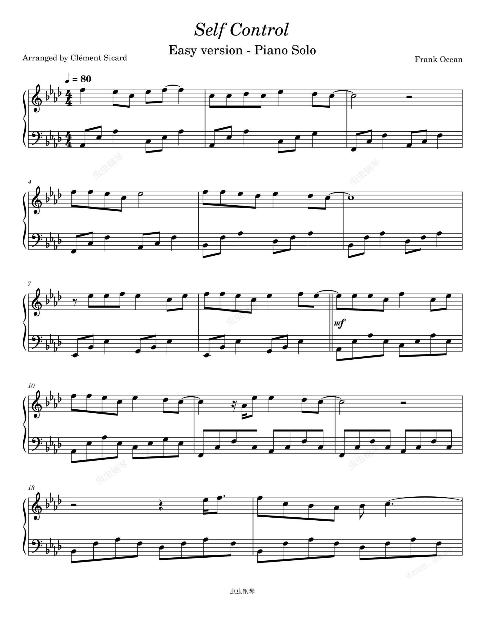 钢琴谱:Self Control - Frank Ocean