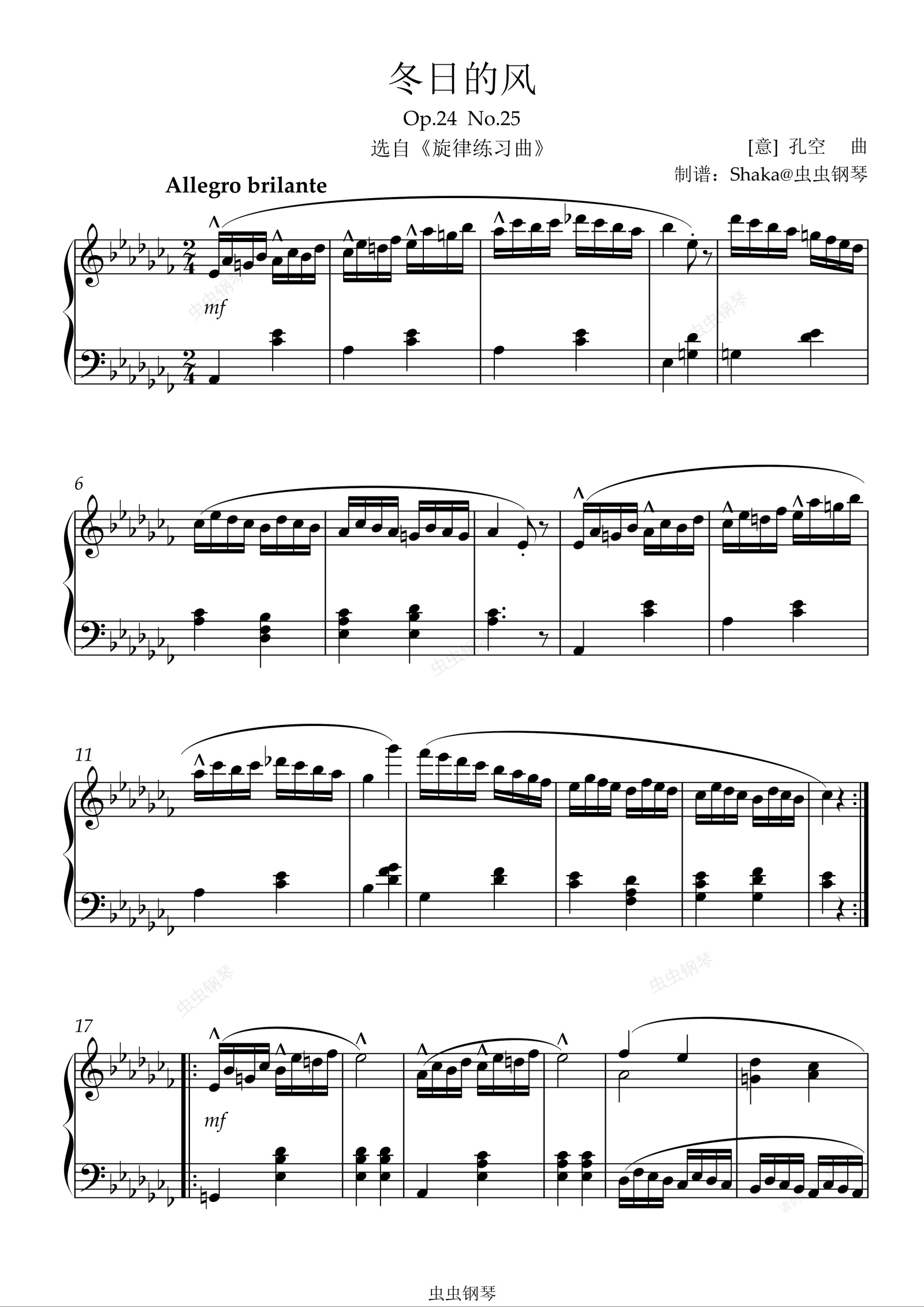 钢琴谱:冬日的风 降a小调较难版 全国音协4级考级曲目