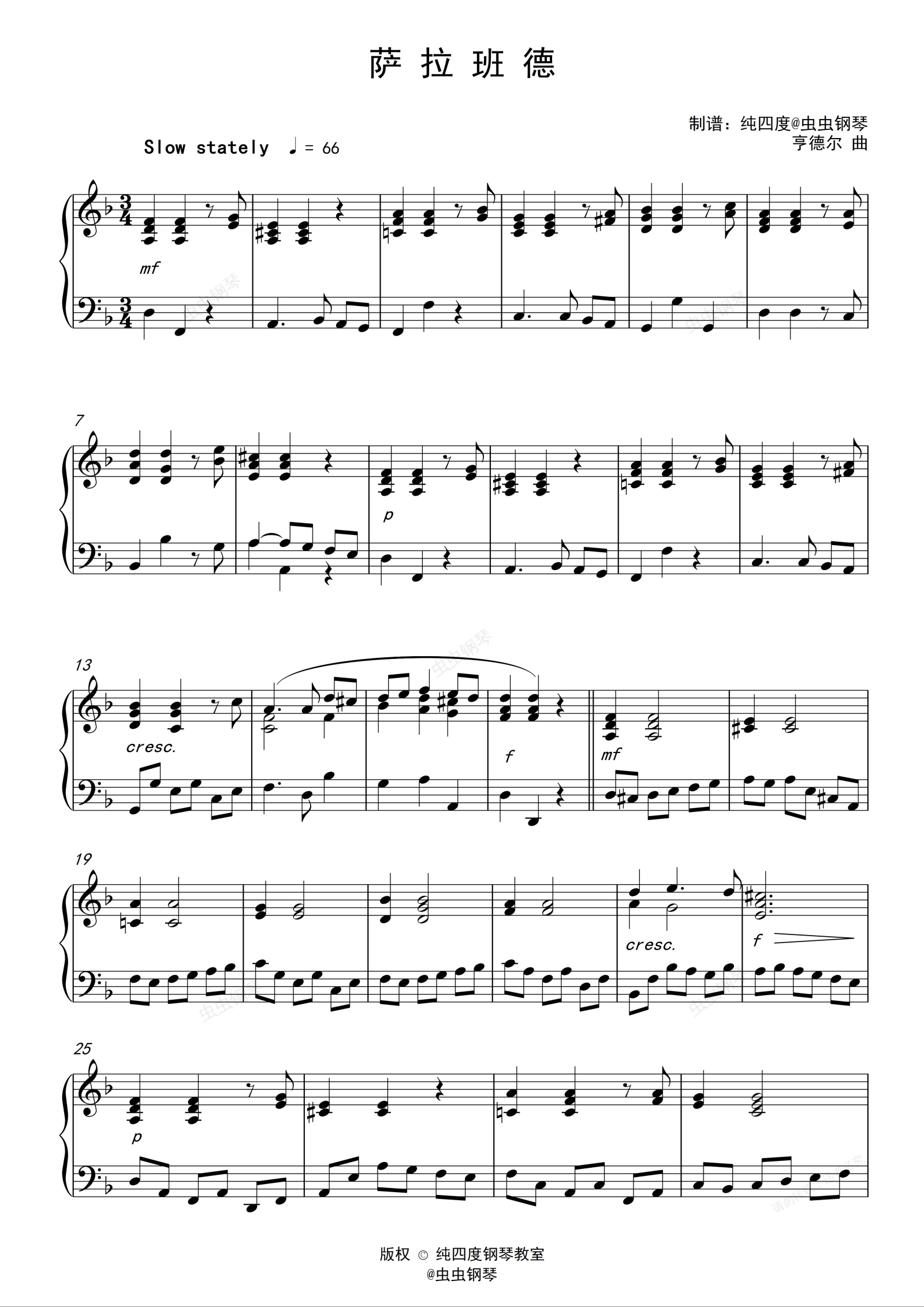 钢琴谱:萨拉班德(钢琴四级考试曲目)