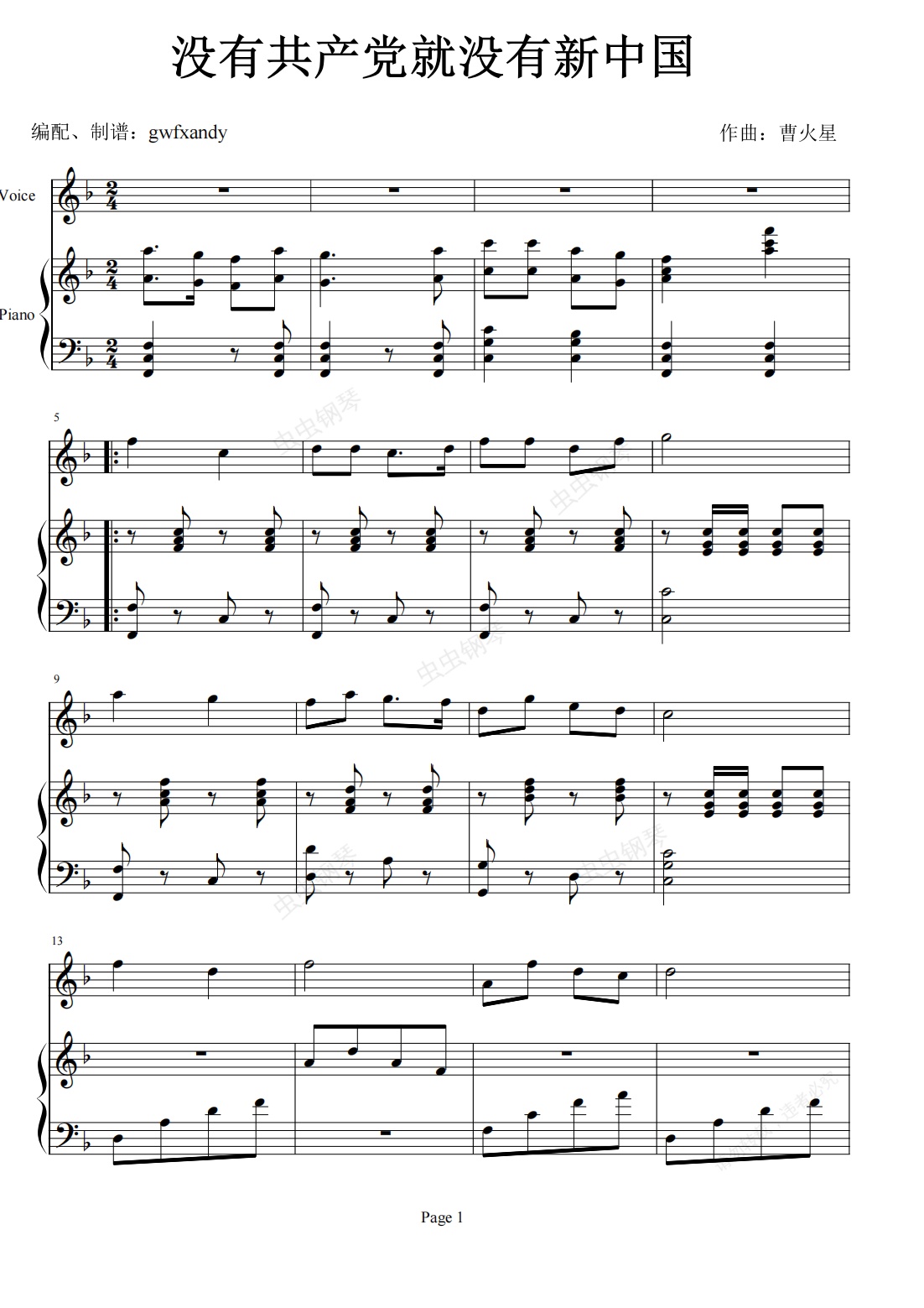 钢琴谱:《没有共产党就没有新中国》