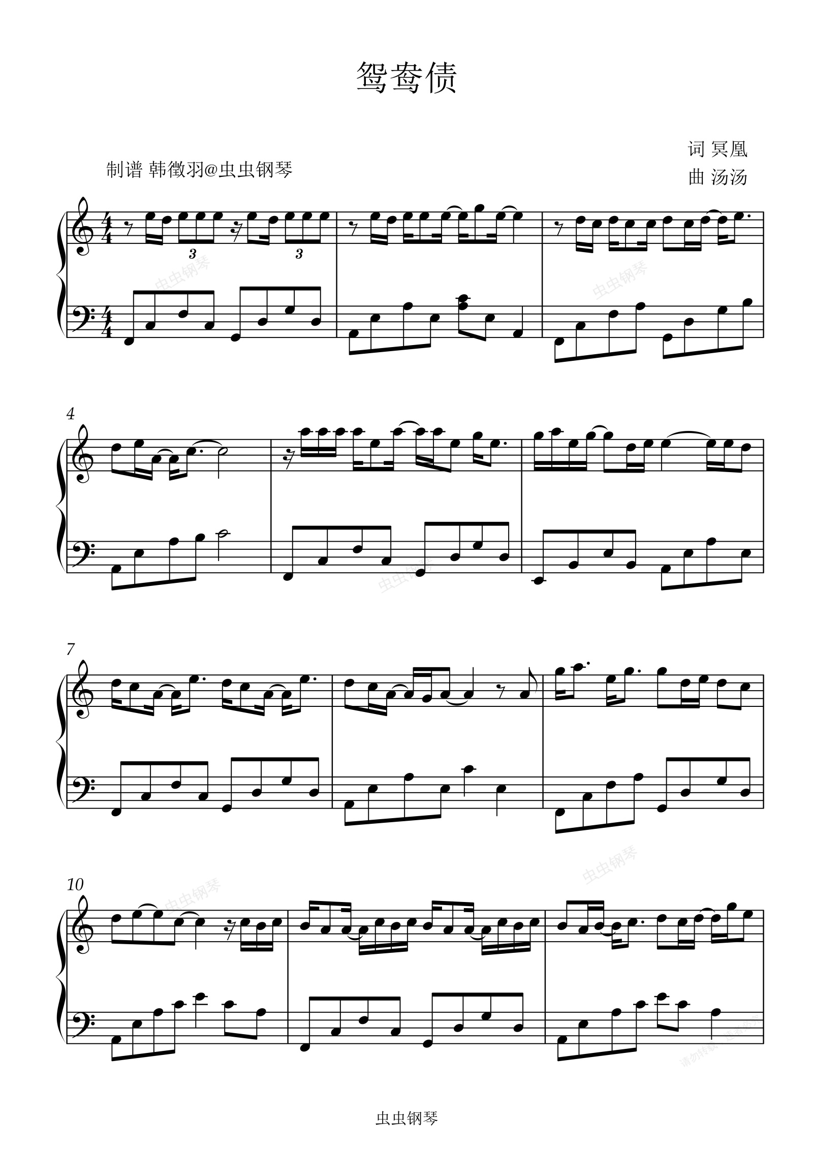 钢琴谱:鸳鸯债-纸嫁衣 C调
