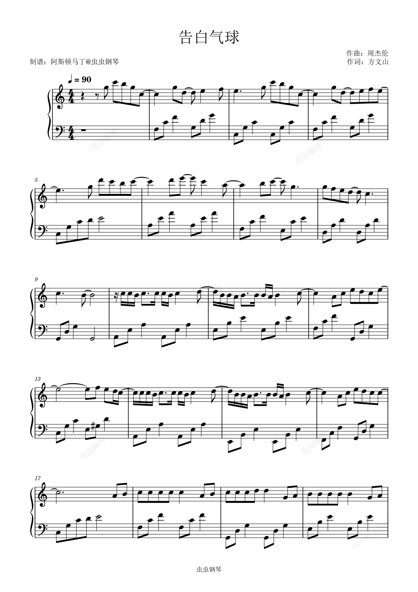 钢琴谱:告白气球 - 周杰伦【初学简易版】