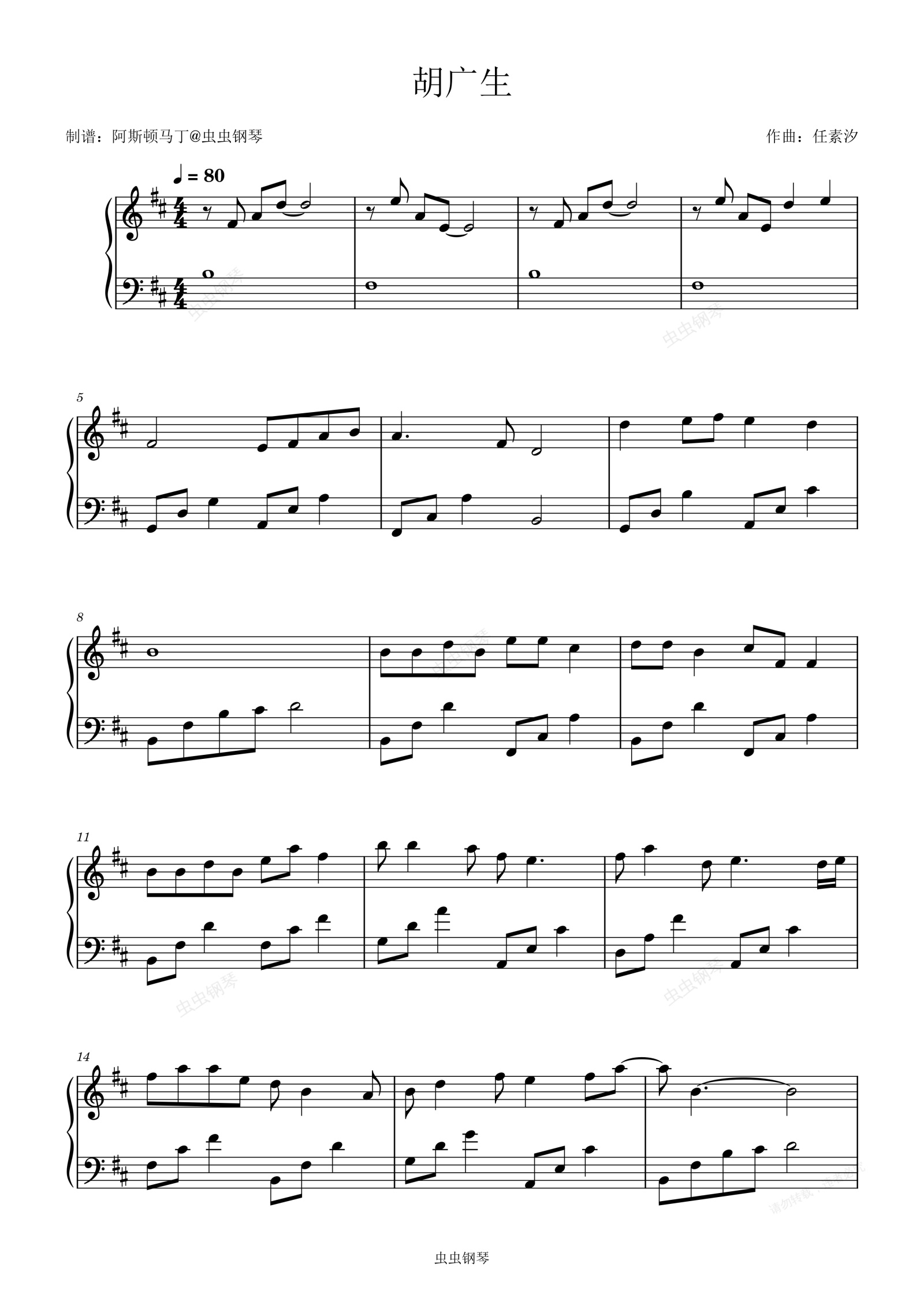 钢琴谱:胡广生 - 任素汐【初学简易版】