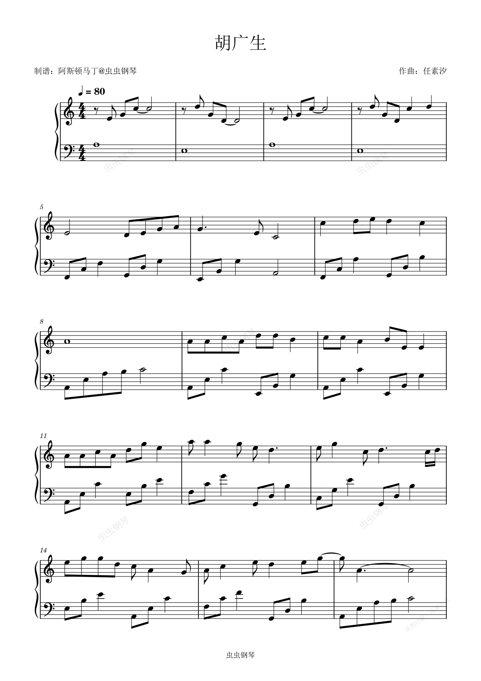 钢琴谱:胡广生 - 任素汐【初学简易版】