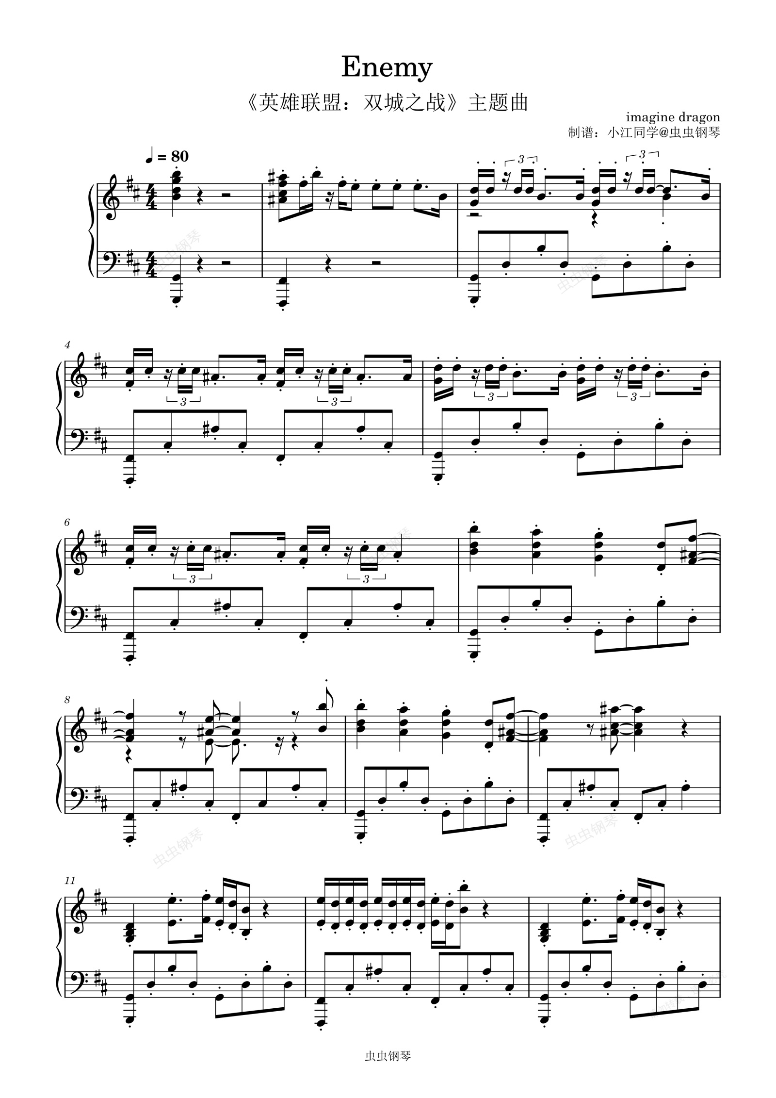 钢琴谱:Enemy 《英雄联盟:双城之战》主题曲