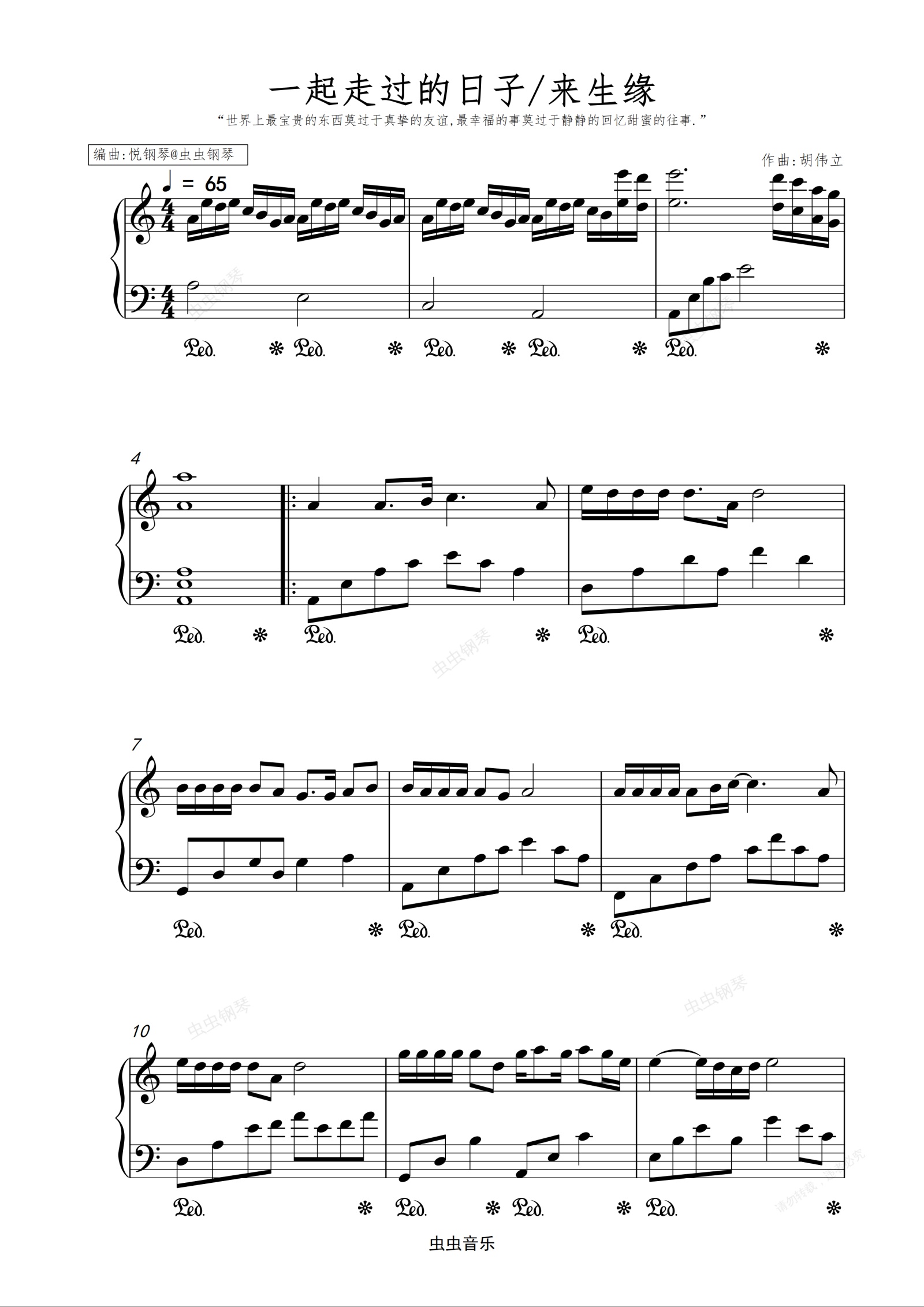 钢琴谱:一起走过的日子/来生缘(a小调版) 刘德华