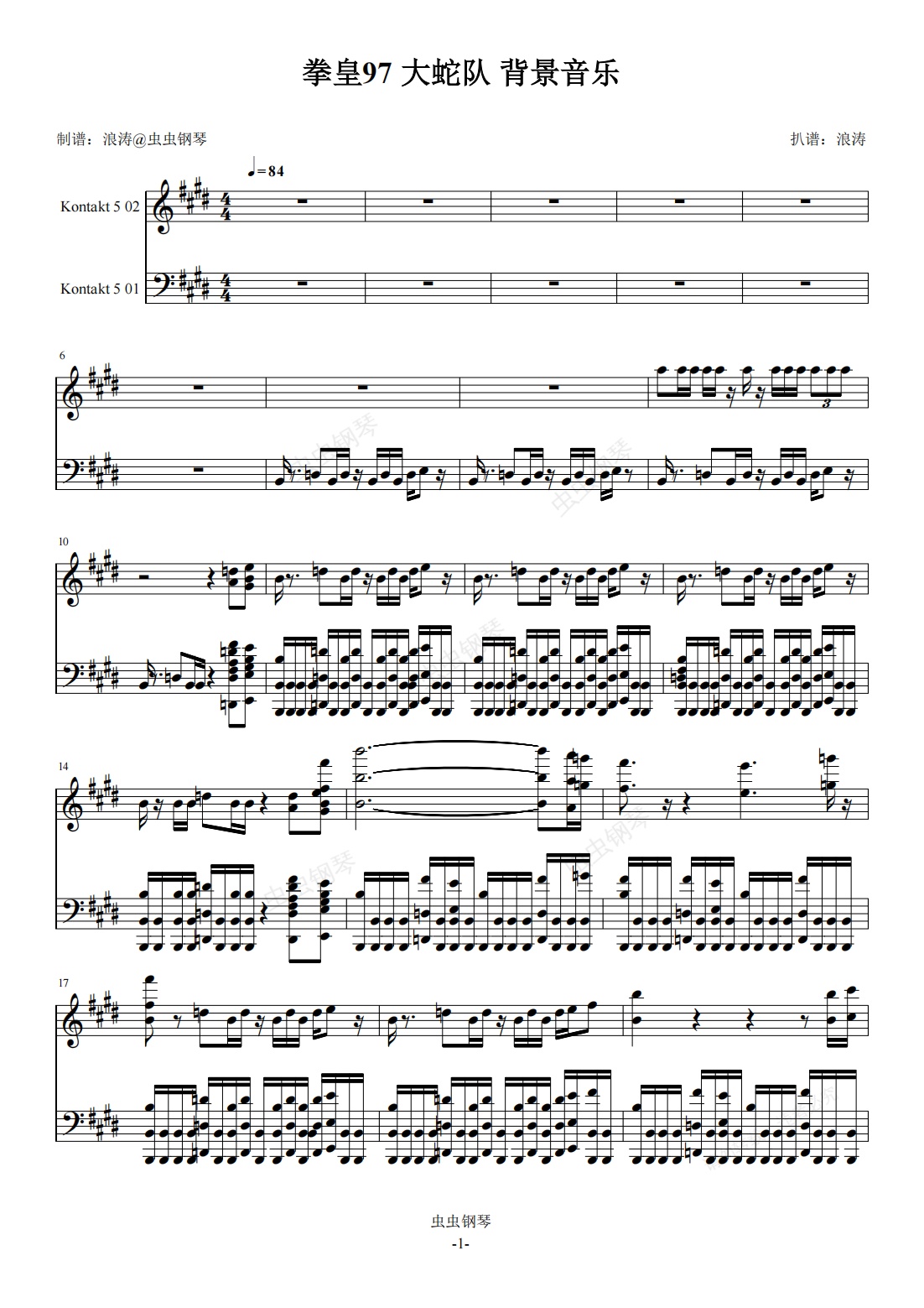 钢琴谱:拳皇97 大蛇队 背景音乐