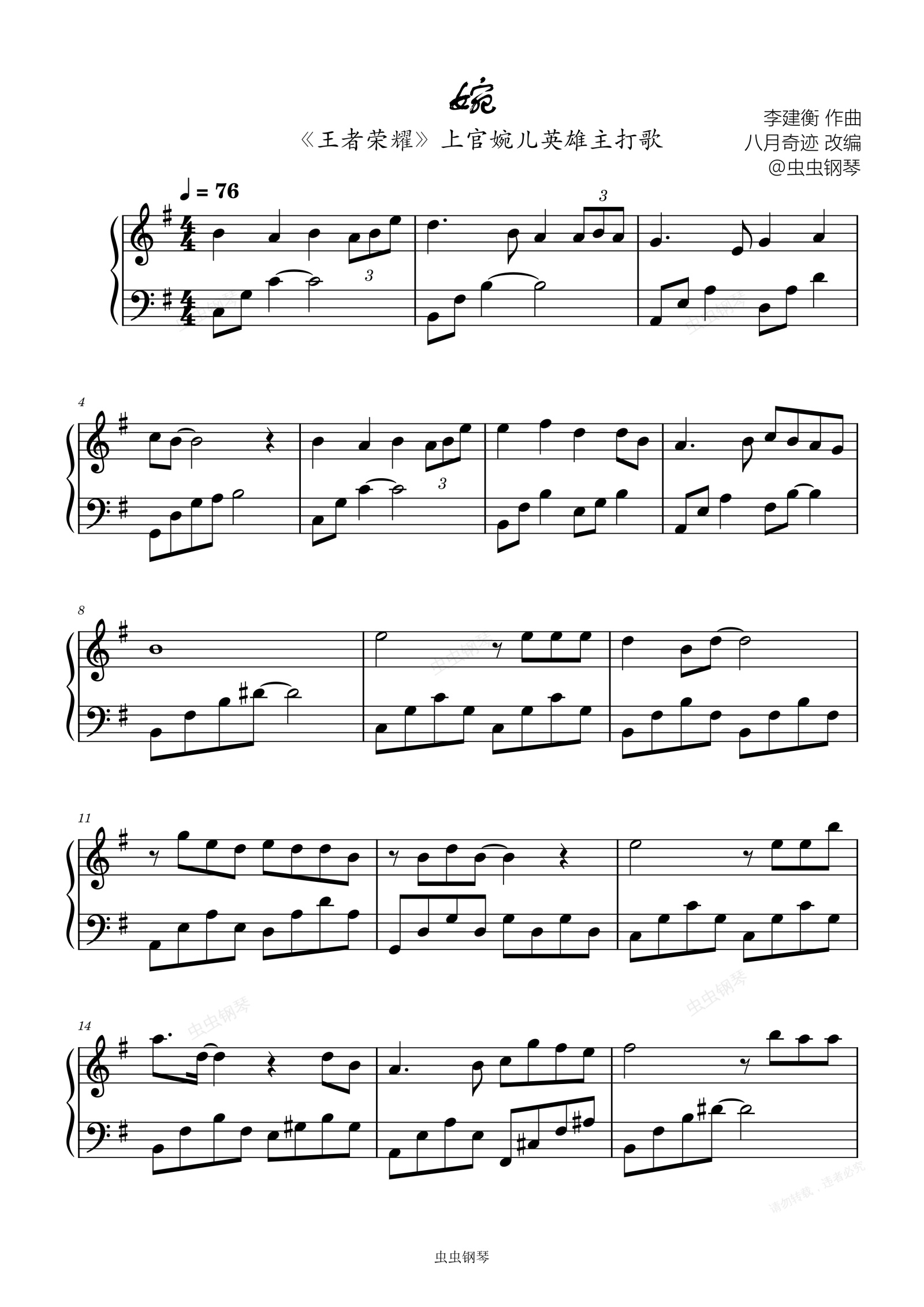 钢琴谱:《婉》G大调 《王者荣耀》上官婉儿英雄主打歌