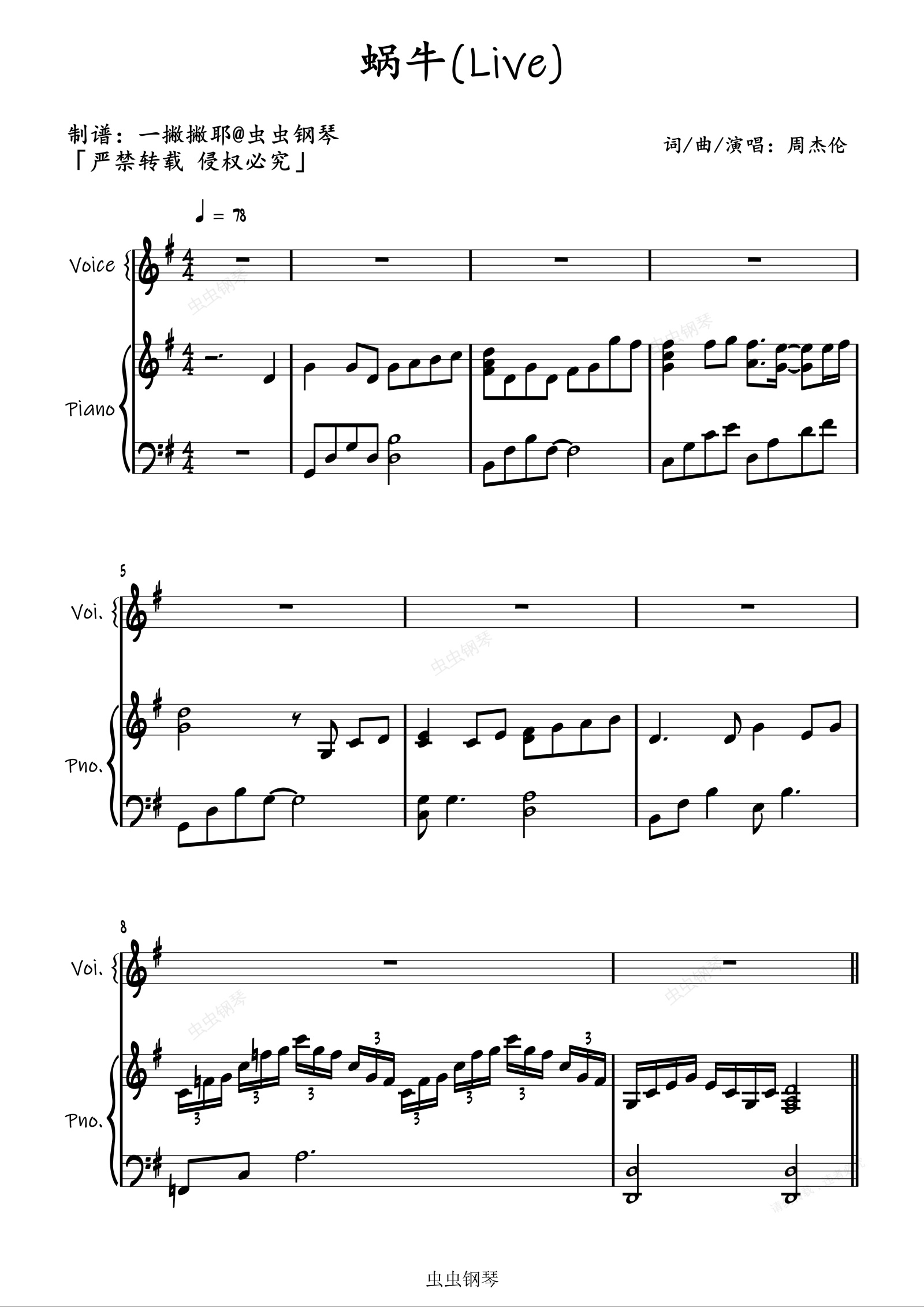 钢琴谱:《蜗牛》周杰伦现场弹唱版「一撇撇耶」