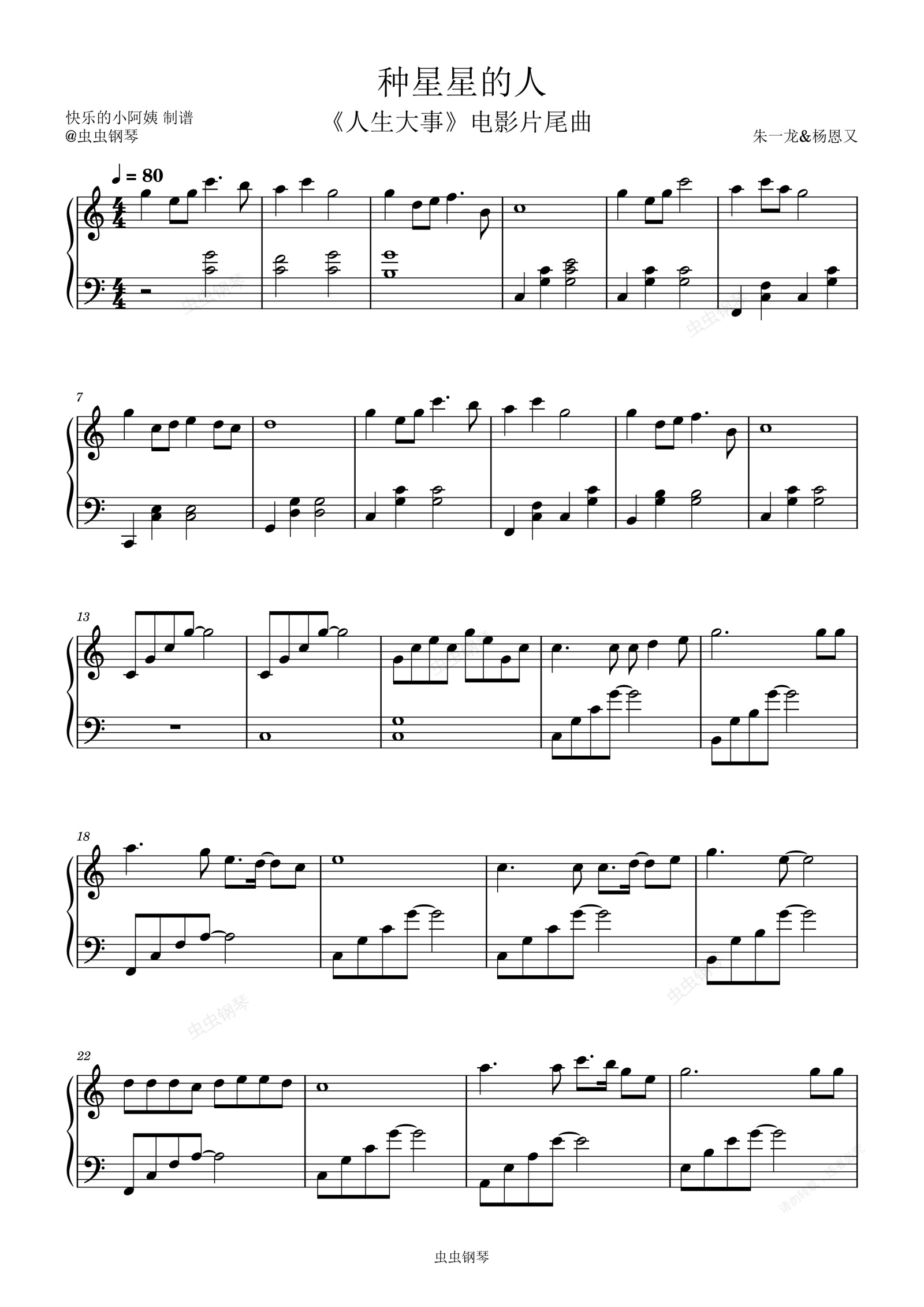 钢琴谱:种星星的人-C调//《人生大事》电影片尾曲