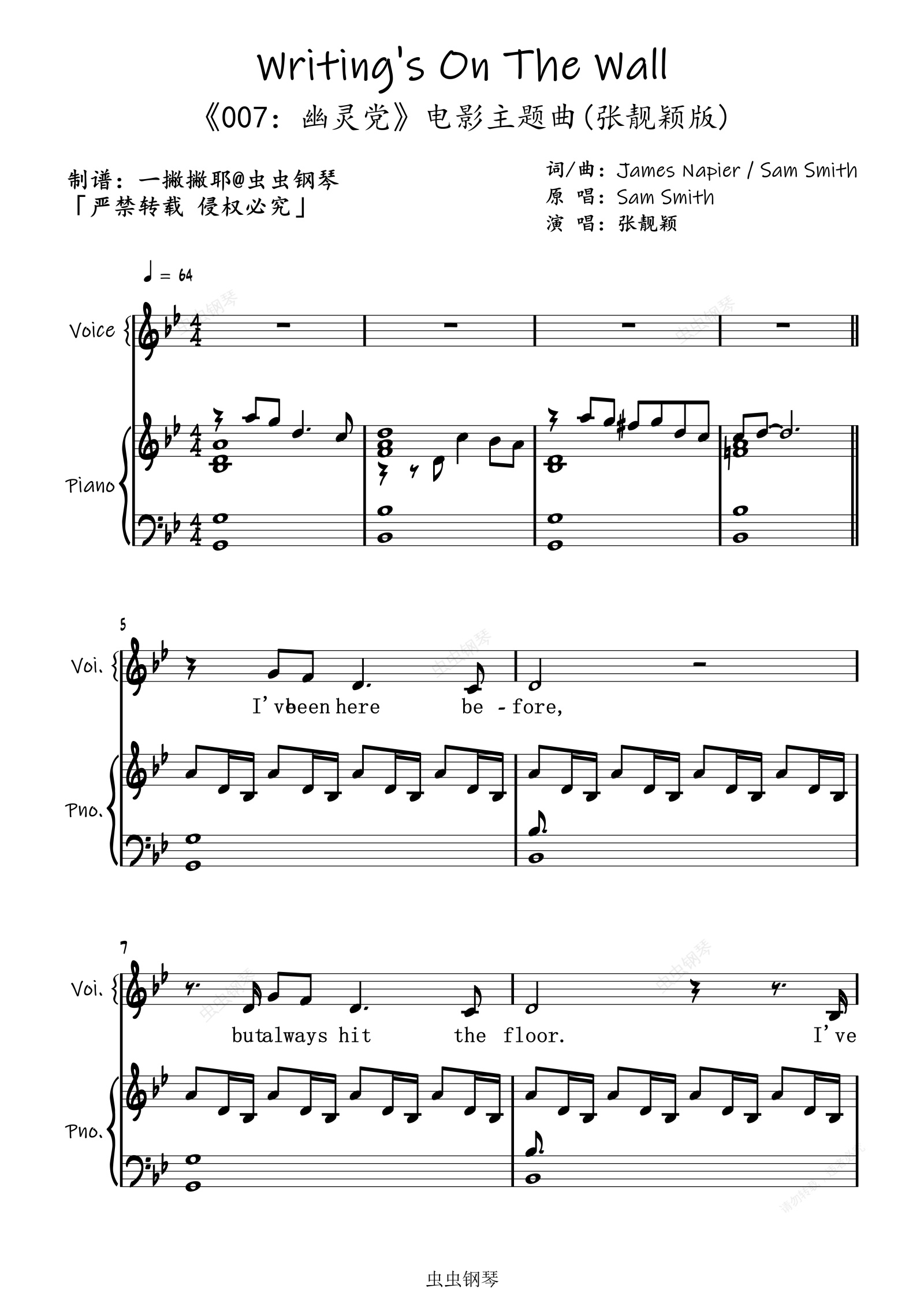 钢琴谱:《Writing's On The Wall》张靓颖版弹唱谱「一撇撇耶」