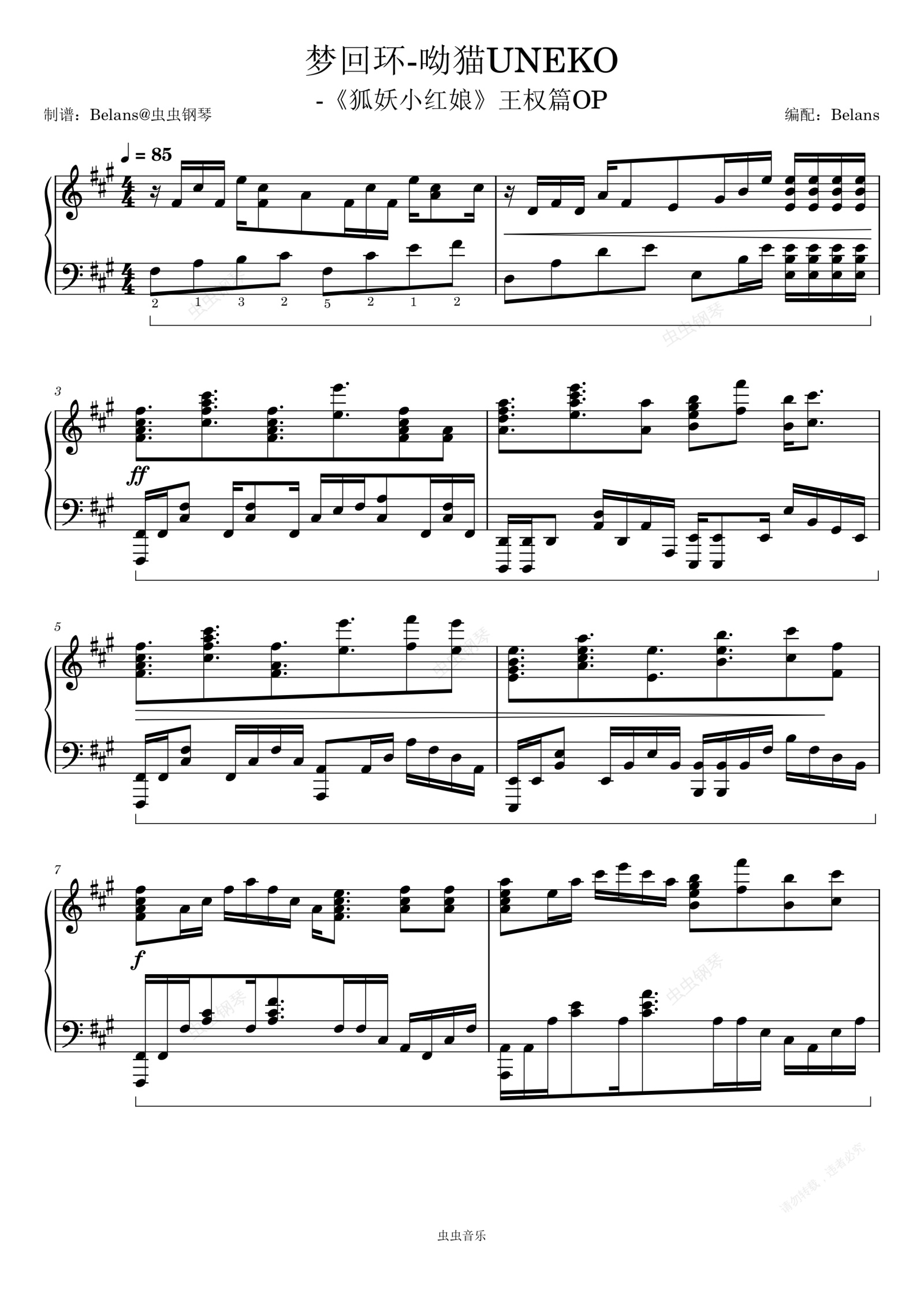 钢琴谱:梦回还-呦猫UNEKO 极致高燃还原版
