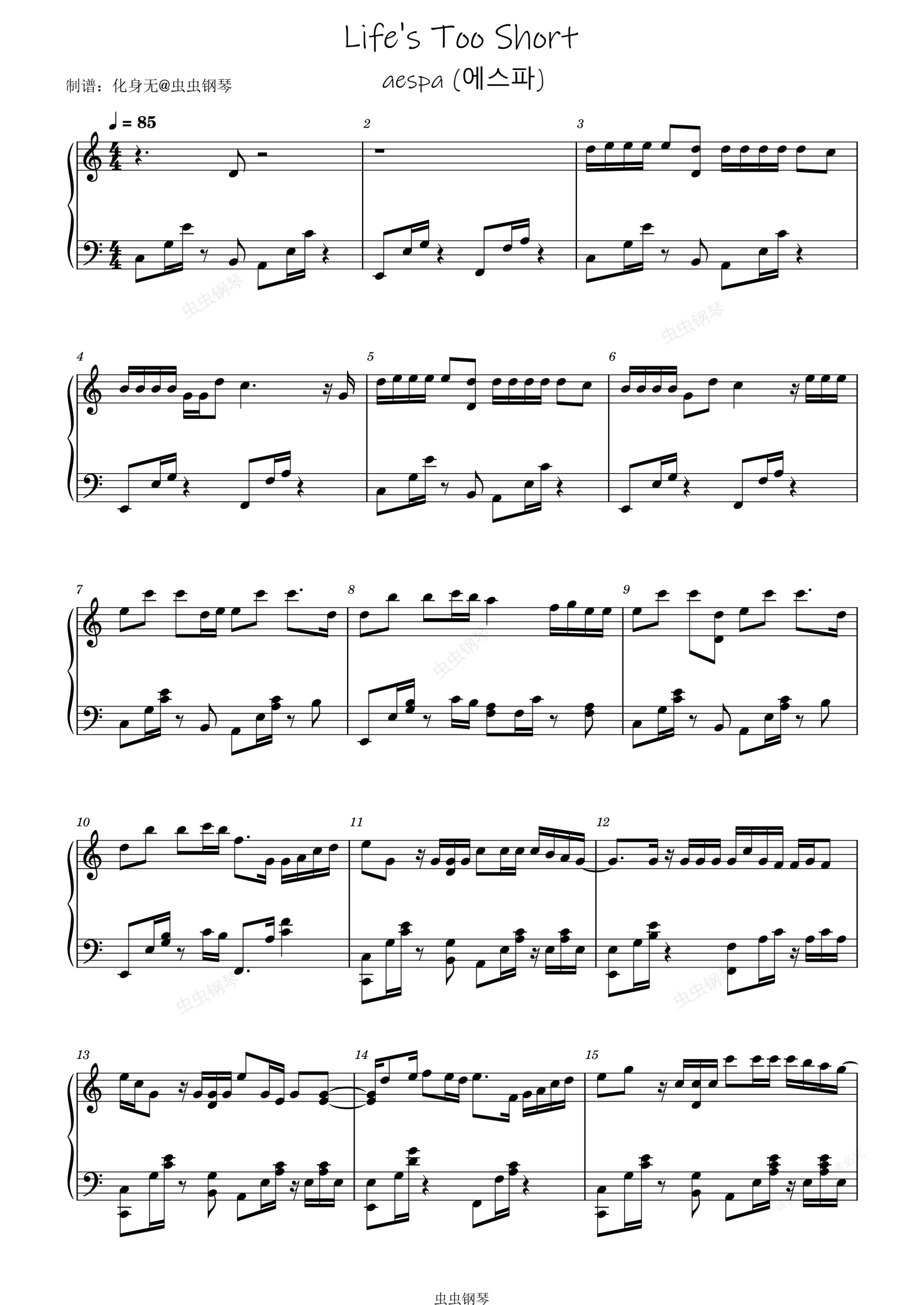 钢琴谱:Life's Too Short 原调独奏版 aespa (에스파)