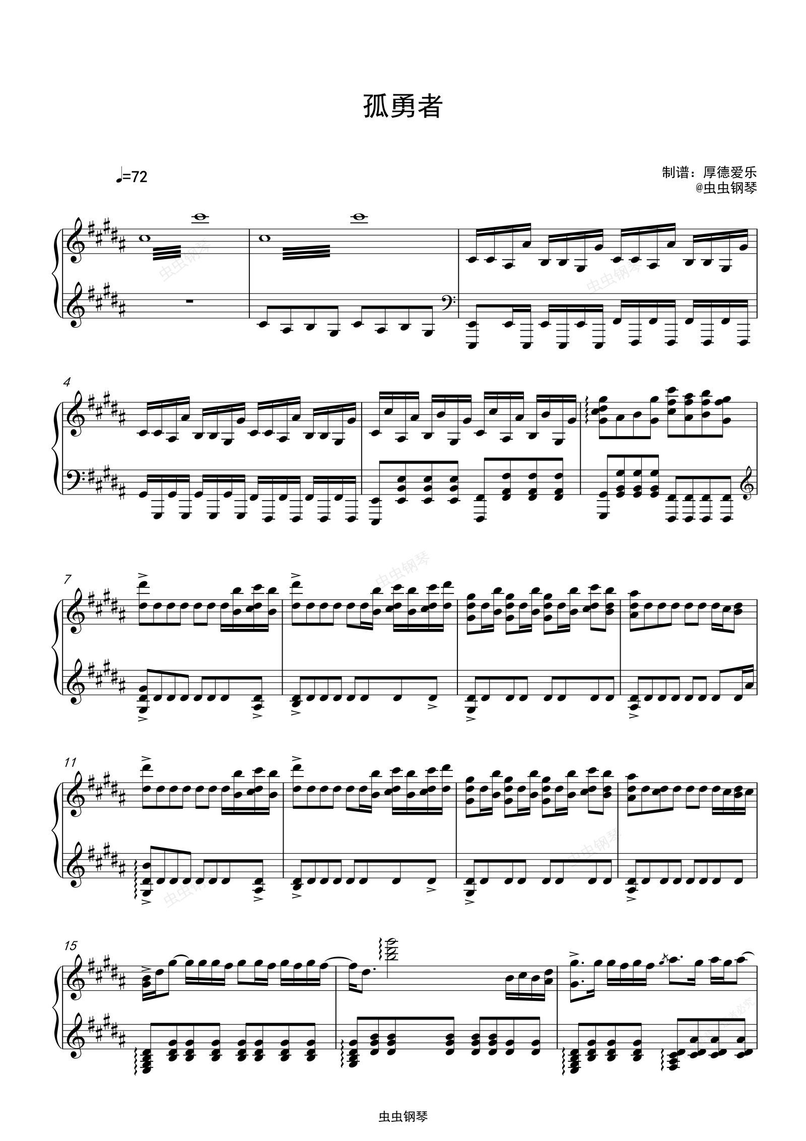 钢琴谱:孤勇者-钱雷高阶演奏版