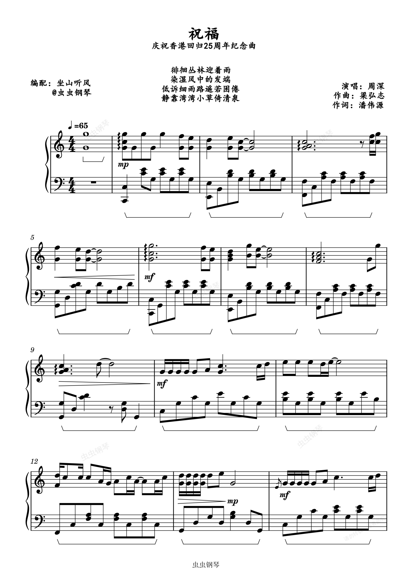 钢琴谱:祝福——庆祝香港回归25周年纪念曲【周深】