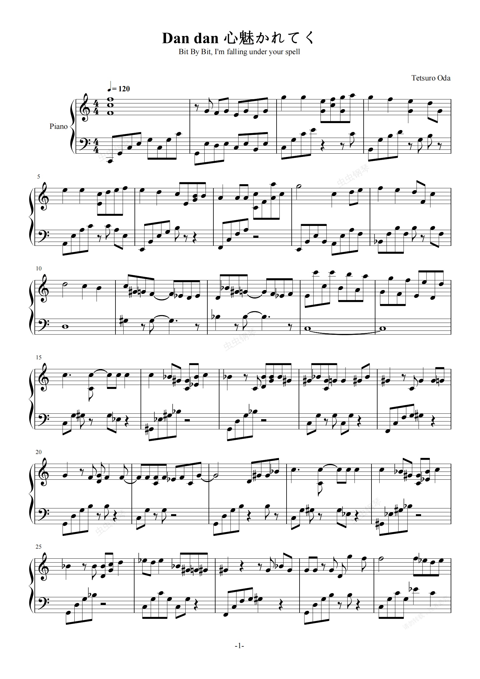 钢琴谱:DAN DAN 心魅かれてく渐渐被你吸引 简化版