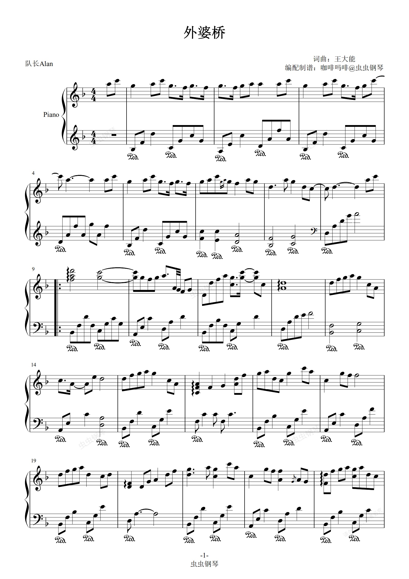 钢琴谱:外婆桥-队长Alan F调钢琴独奏谱
