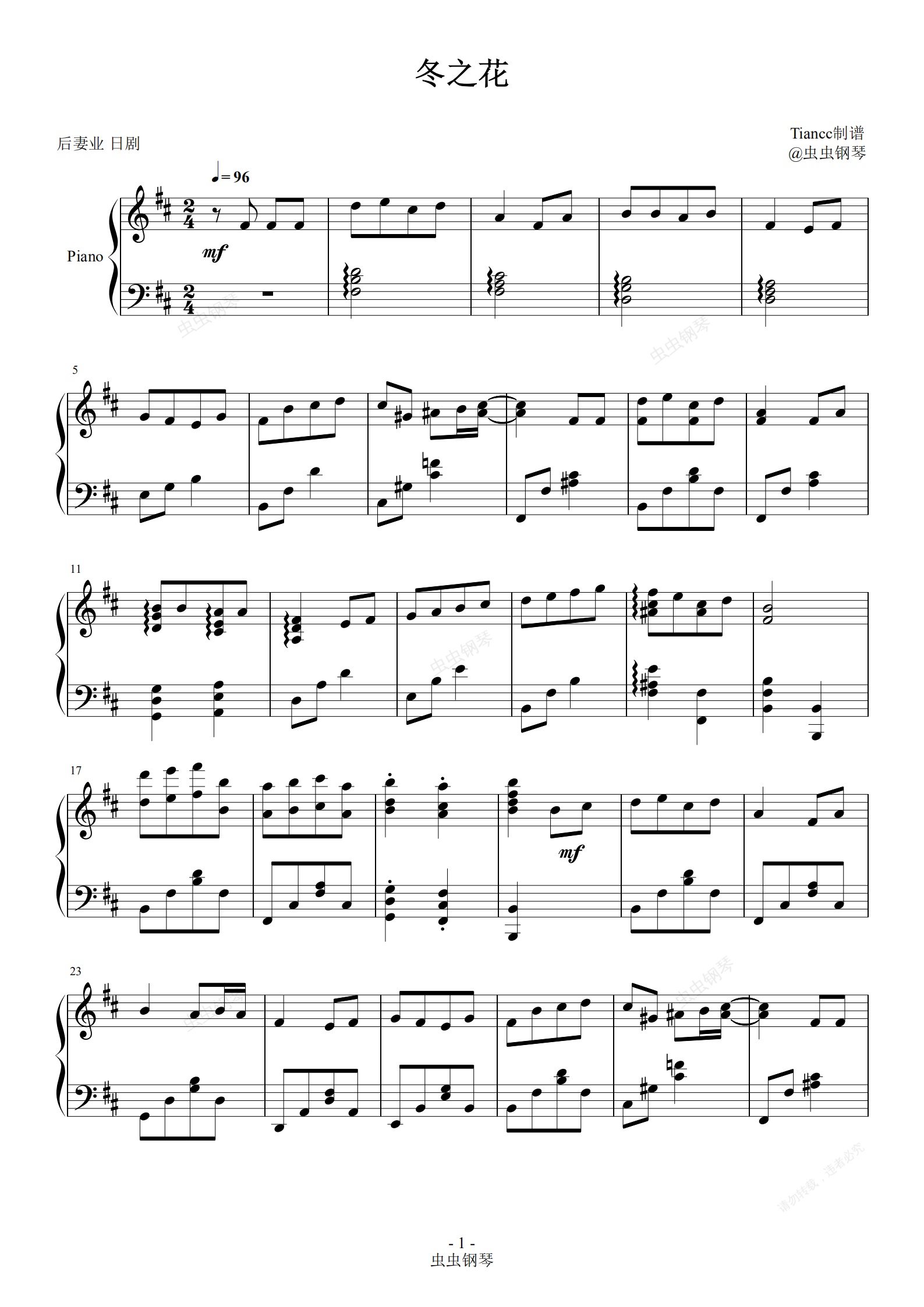 钢琴谱:《冬之花》撕心裂肺的呐喊,299+难度