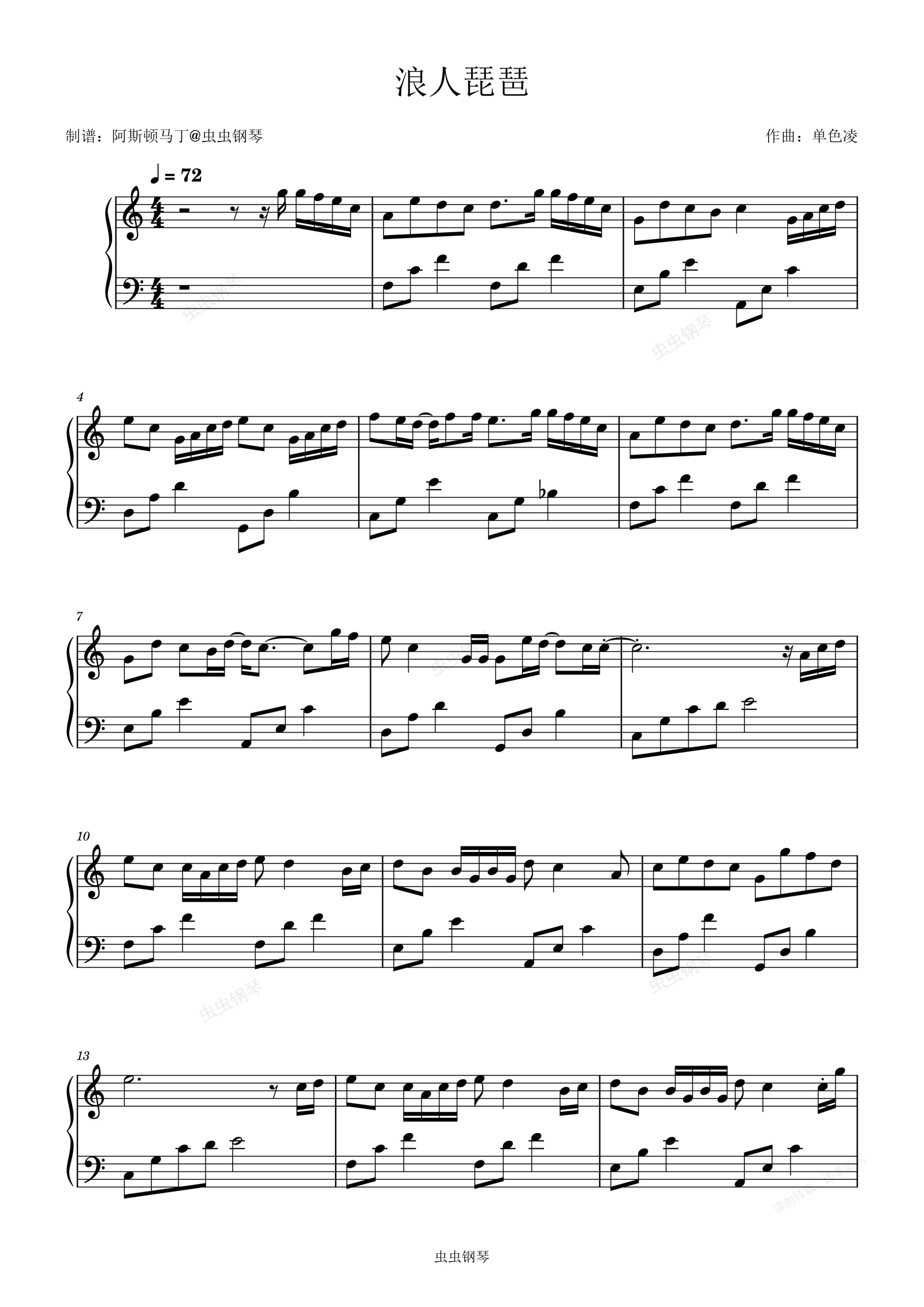 钢琴谱:浪人琵琶 - 胡66【初学简易版】