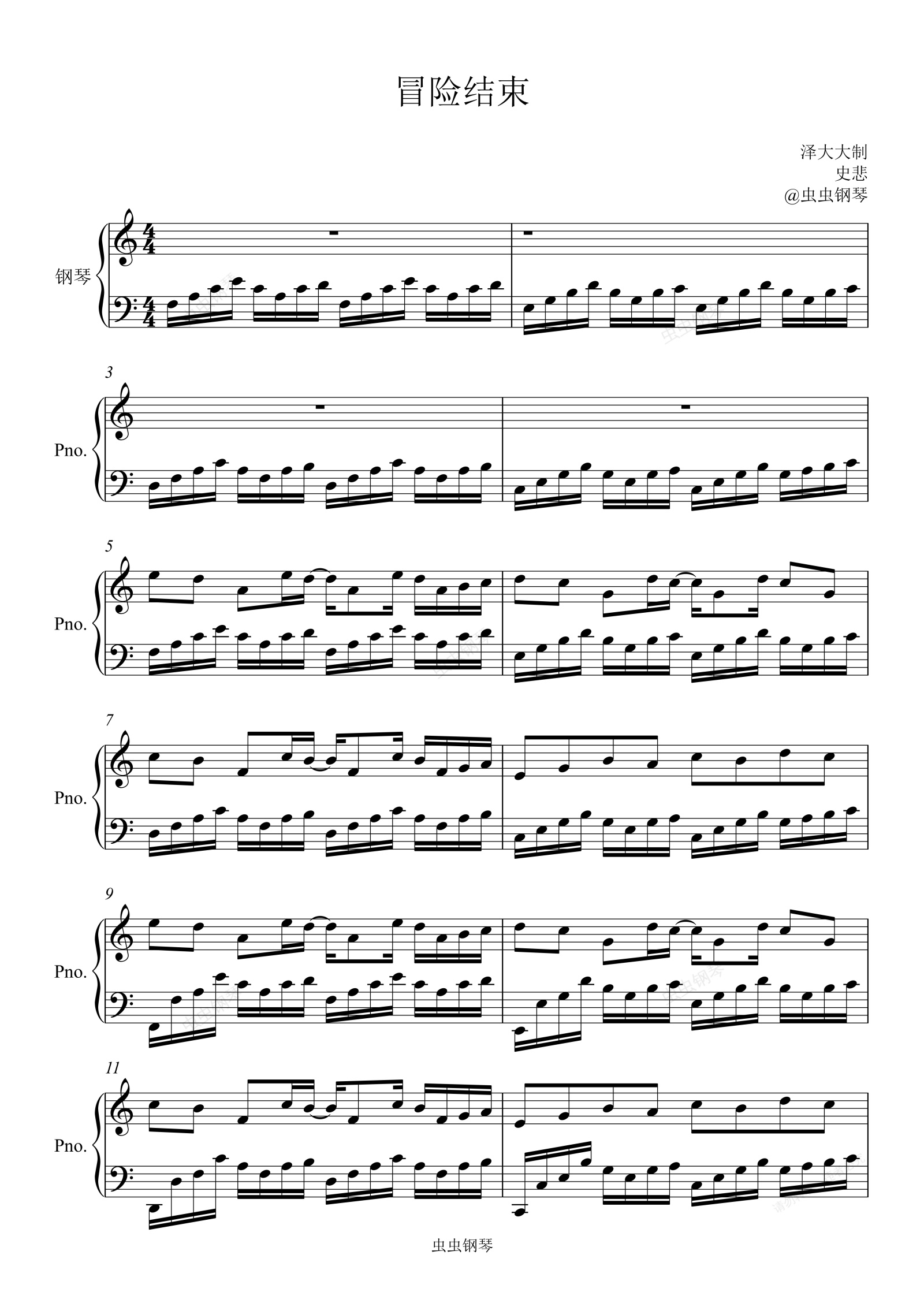 钢琴谱:冒险结束【免费emo场景钢琴独奏】泽大大