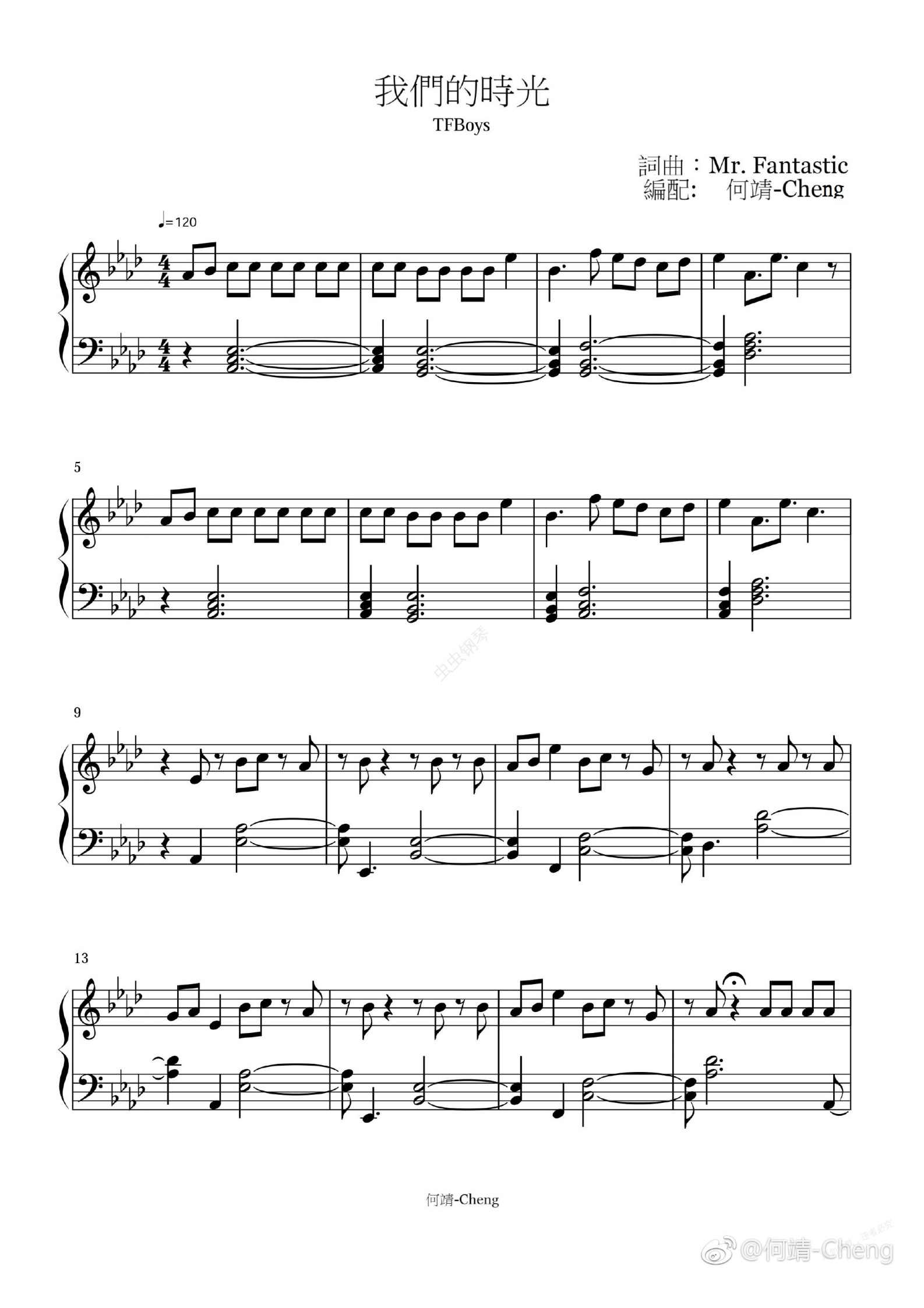 钢琴谱:TFBOYS - 我们的时光