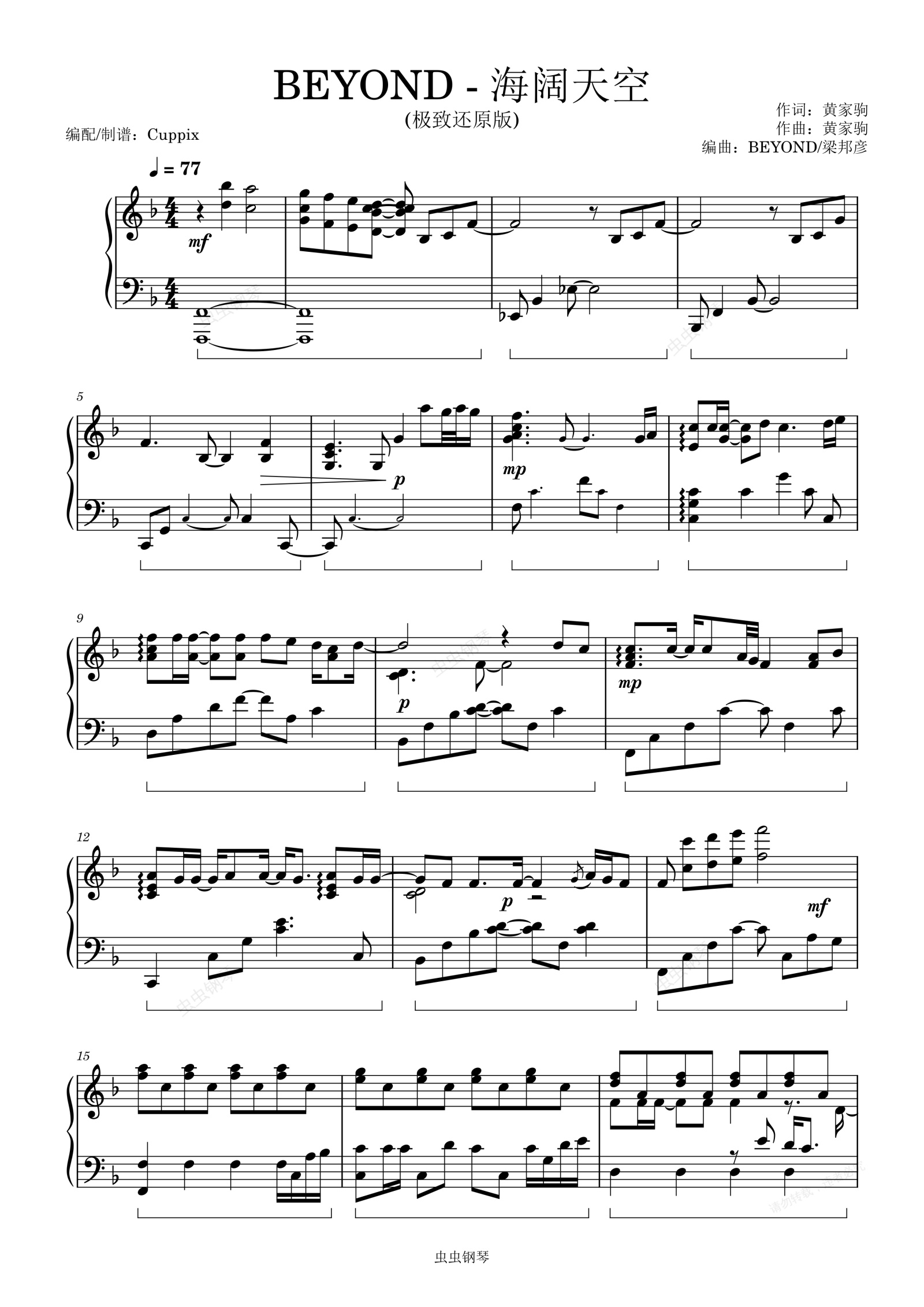 钢琴谱:《海阔天空》Cuppix编配-极致还原(BEYOND)