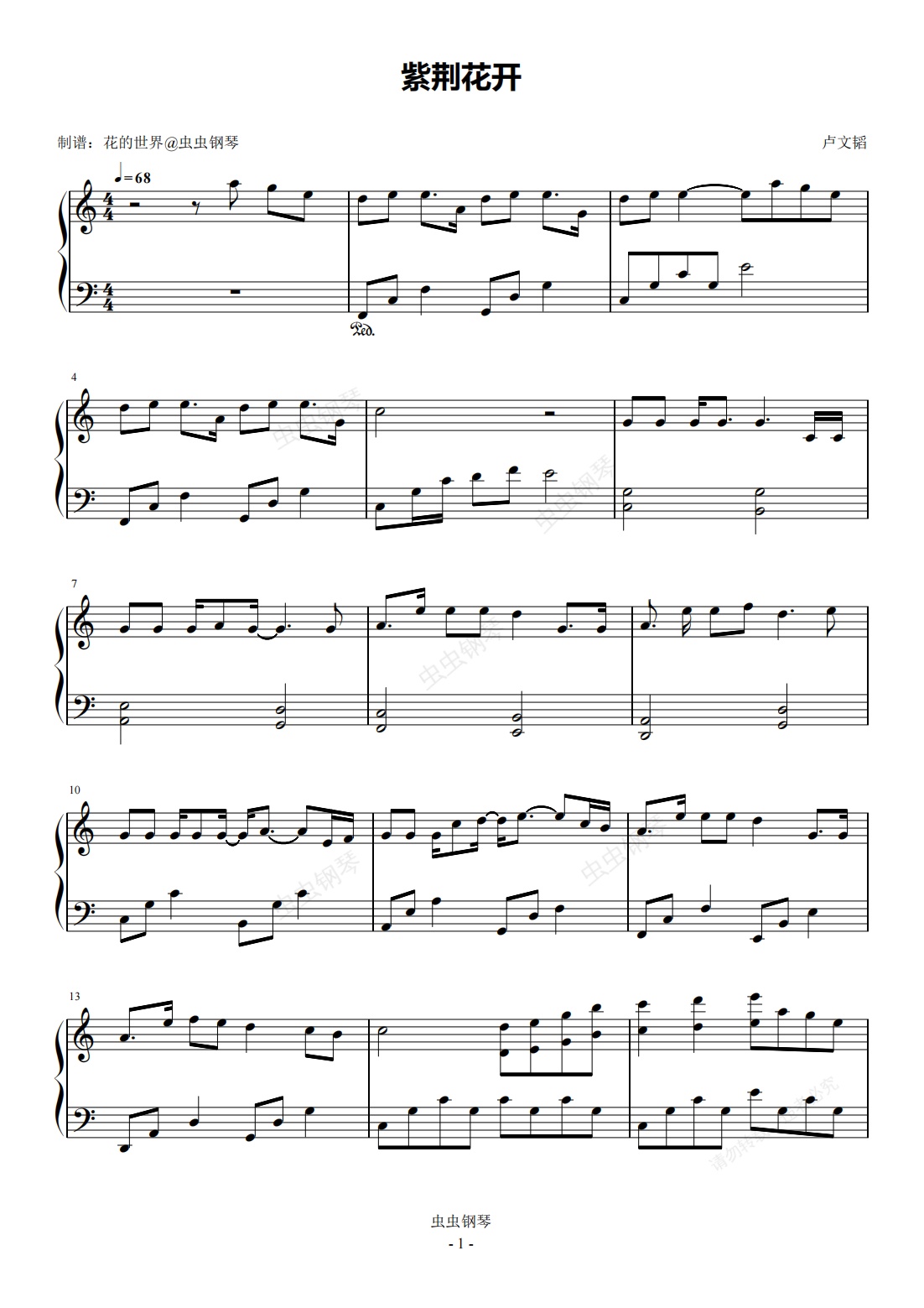 钢琴谱:紫荆花盛开 C调简易版 李荣浩/梁咏琪