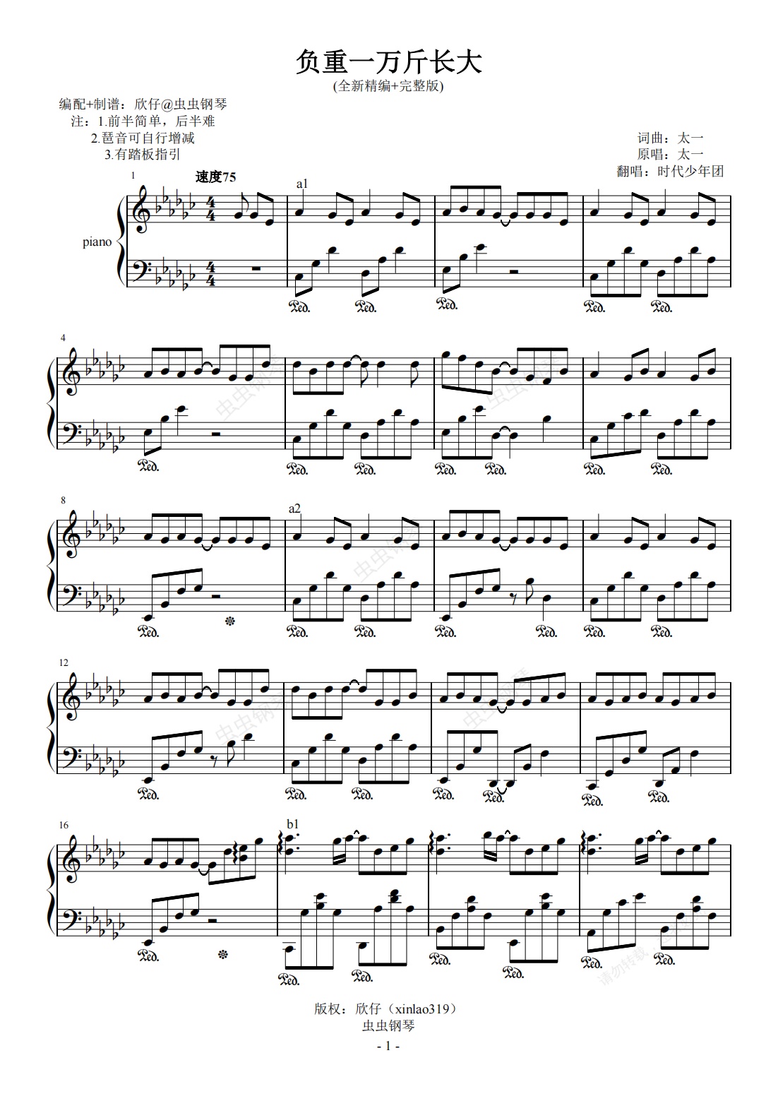 钢琴谱:太一/时代少年团-降G《负重一万斤长大》(全新精编+完整版)