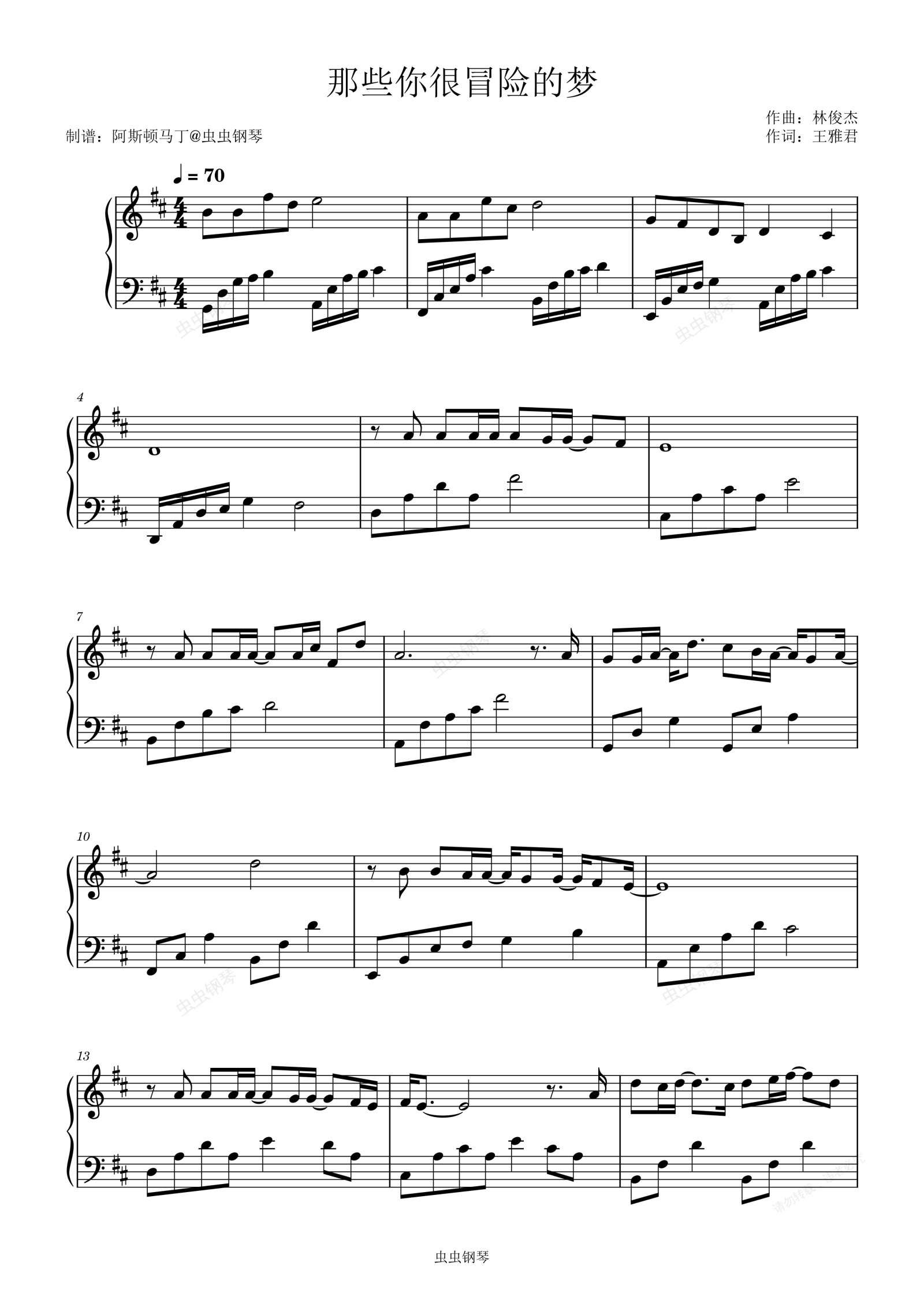 钢琴谱:那些你很冒险的梦 - 林俊杰【初学简易版】