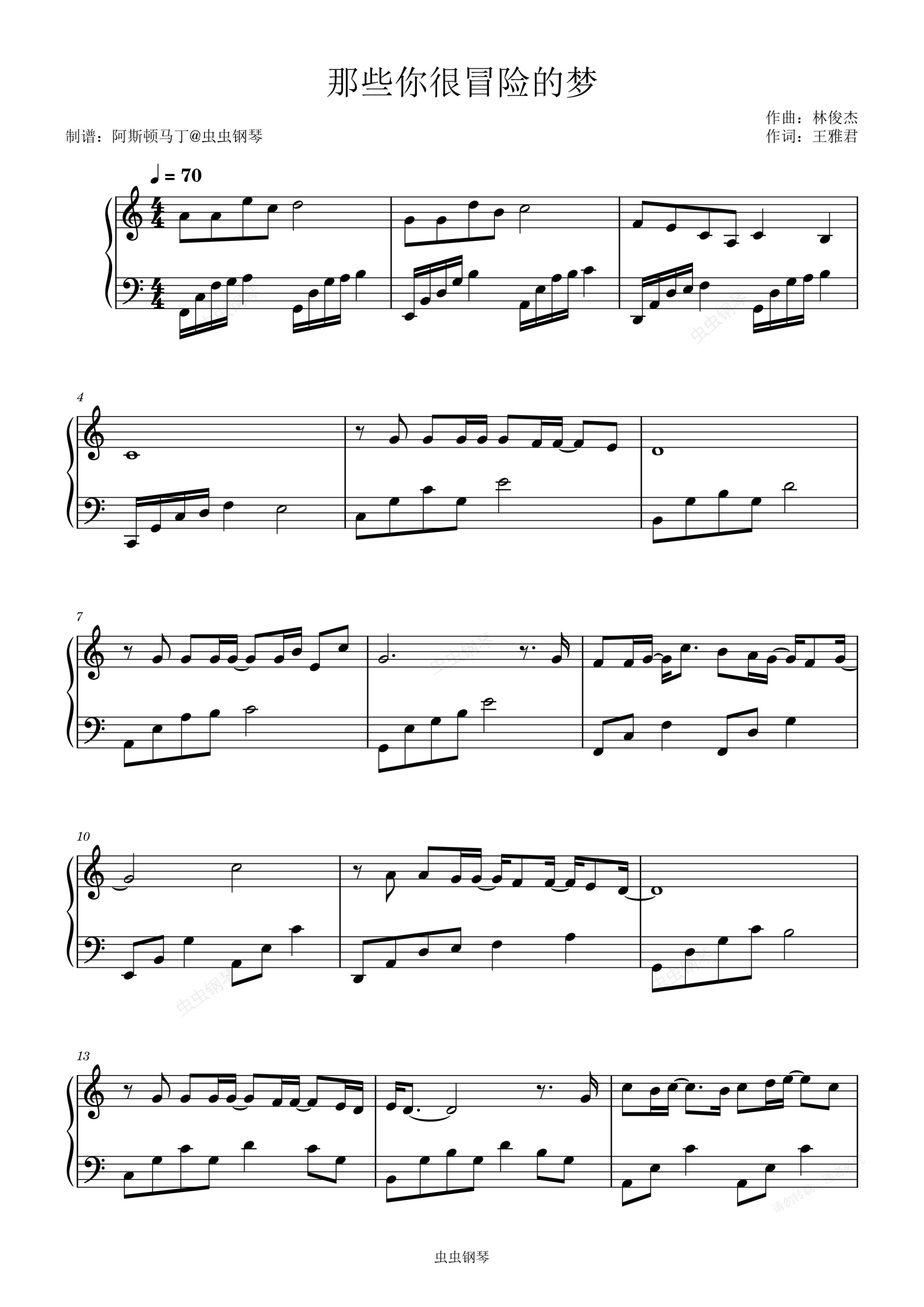 钢琴谱:那些你很冒险的梦 - 林俊杰 【初学简易版】