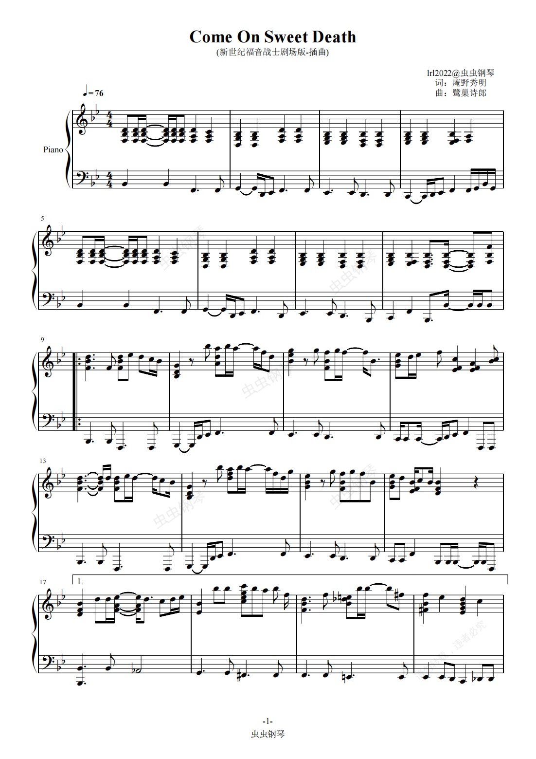 钢琴谱:Come On Sweet Death-新世纪福音战士剧场版-插曲-来吧甜蜜的死亡