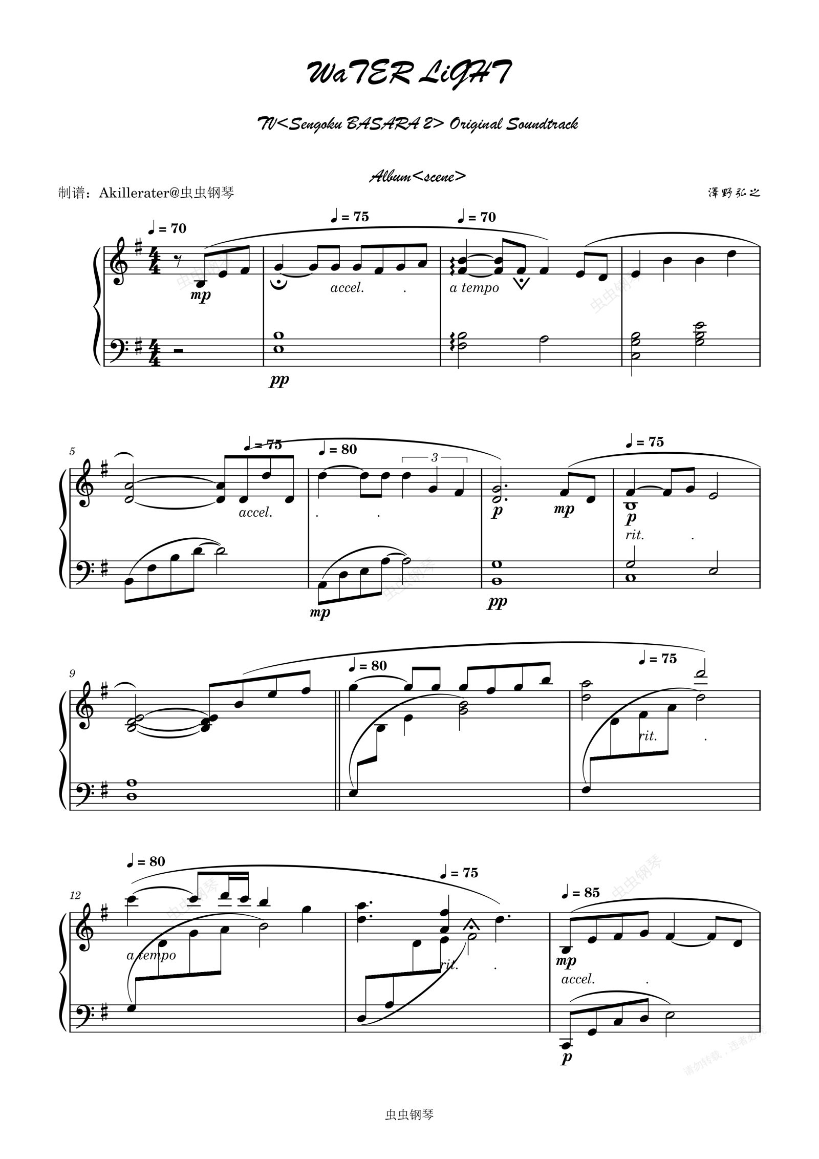 钢琴谱:WaTER LiGHT(《战国basara2》泽野弘之scene钢琴专辑版》