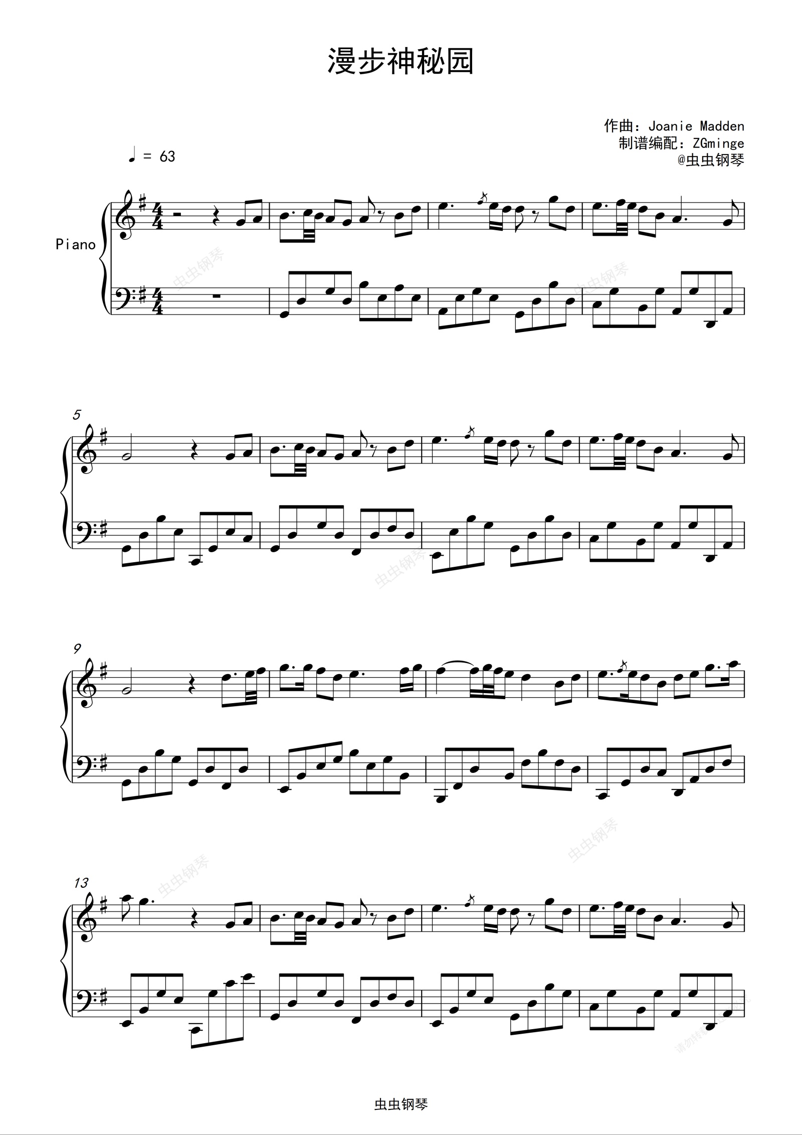 钢琴谱:Down By the Salley Gardens /漫步神秘园