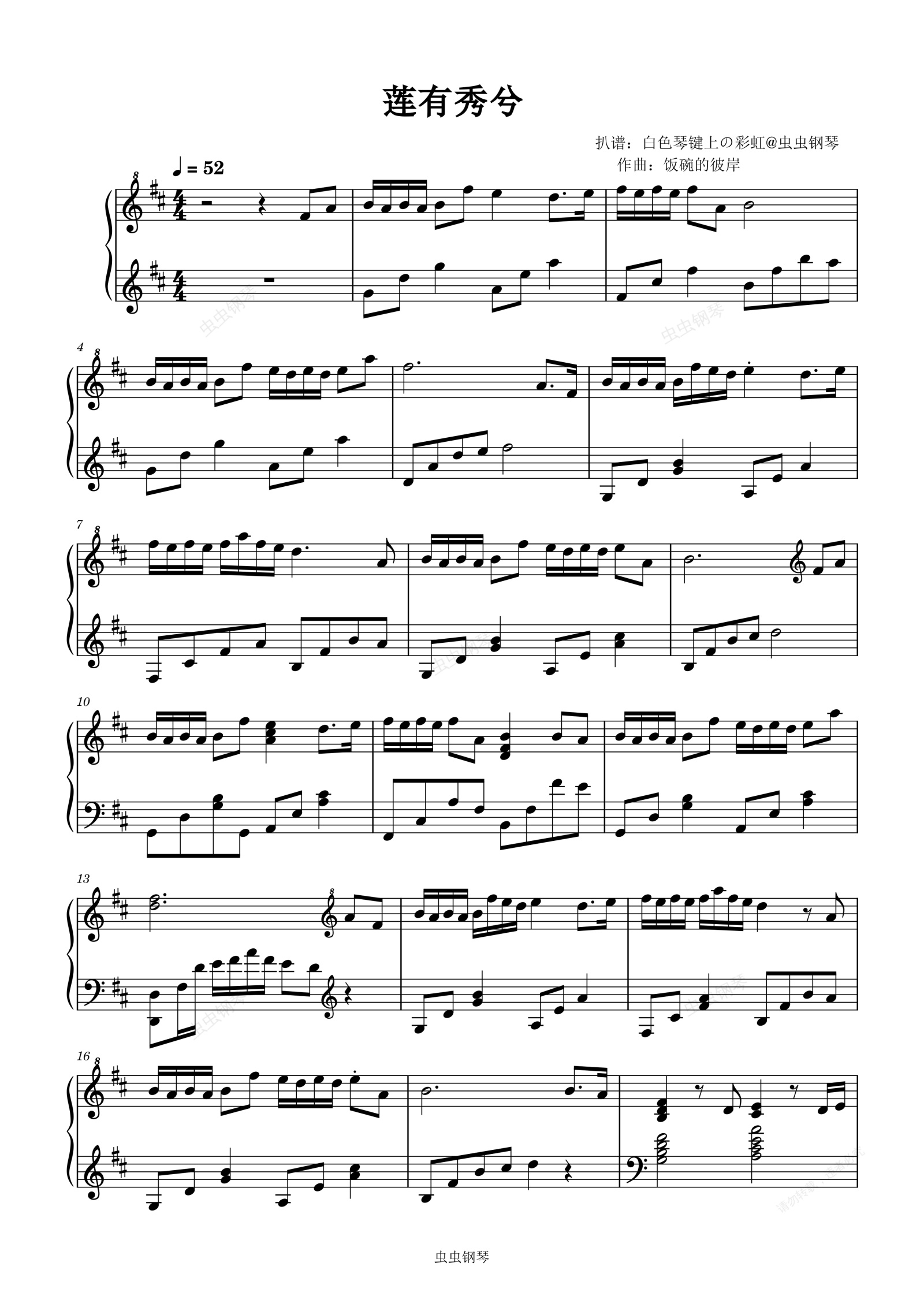钢琴谱:莲有秀兮五线谱