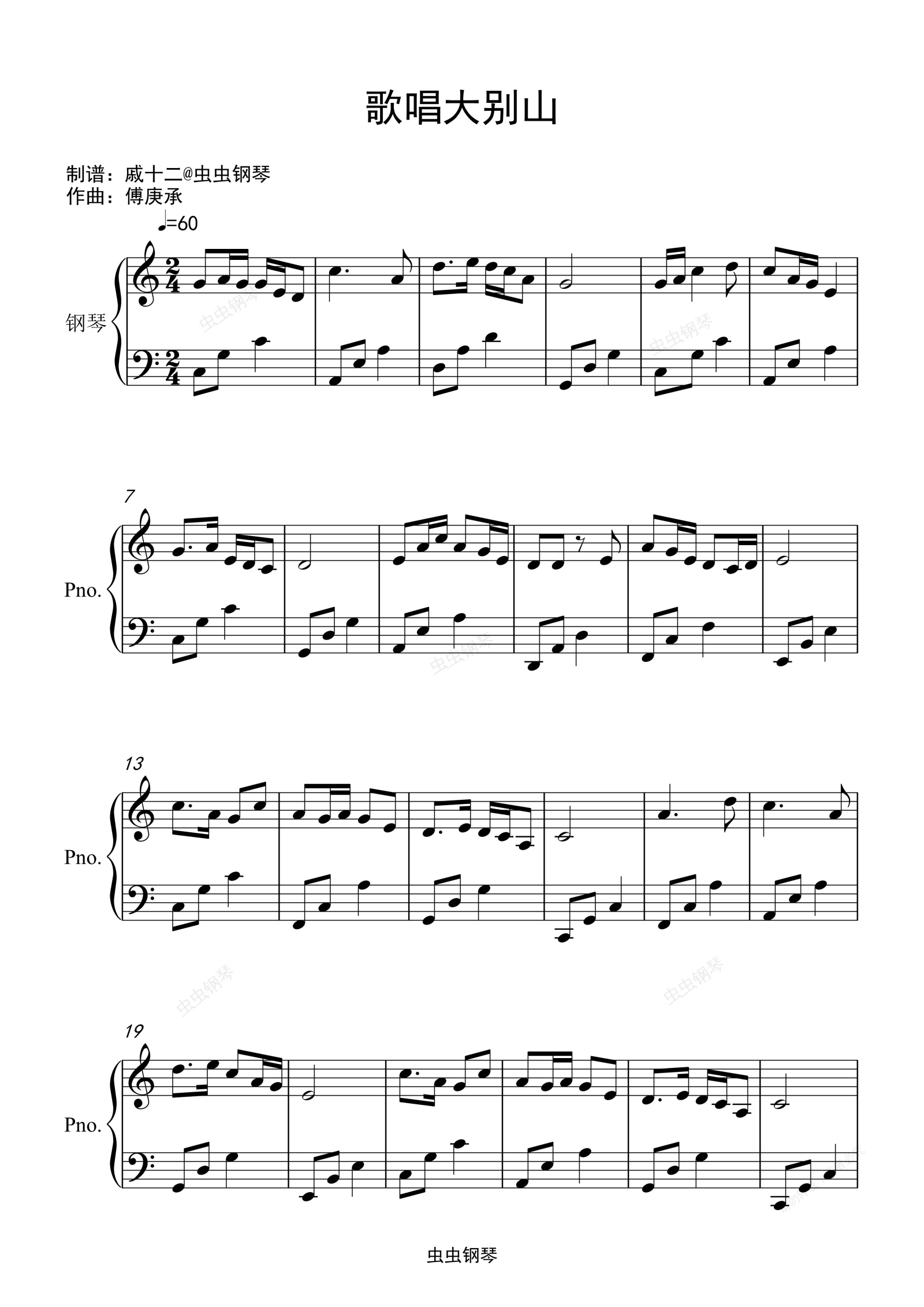 钢琴谱:歌唱大别山-C调简单版