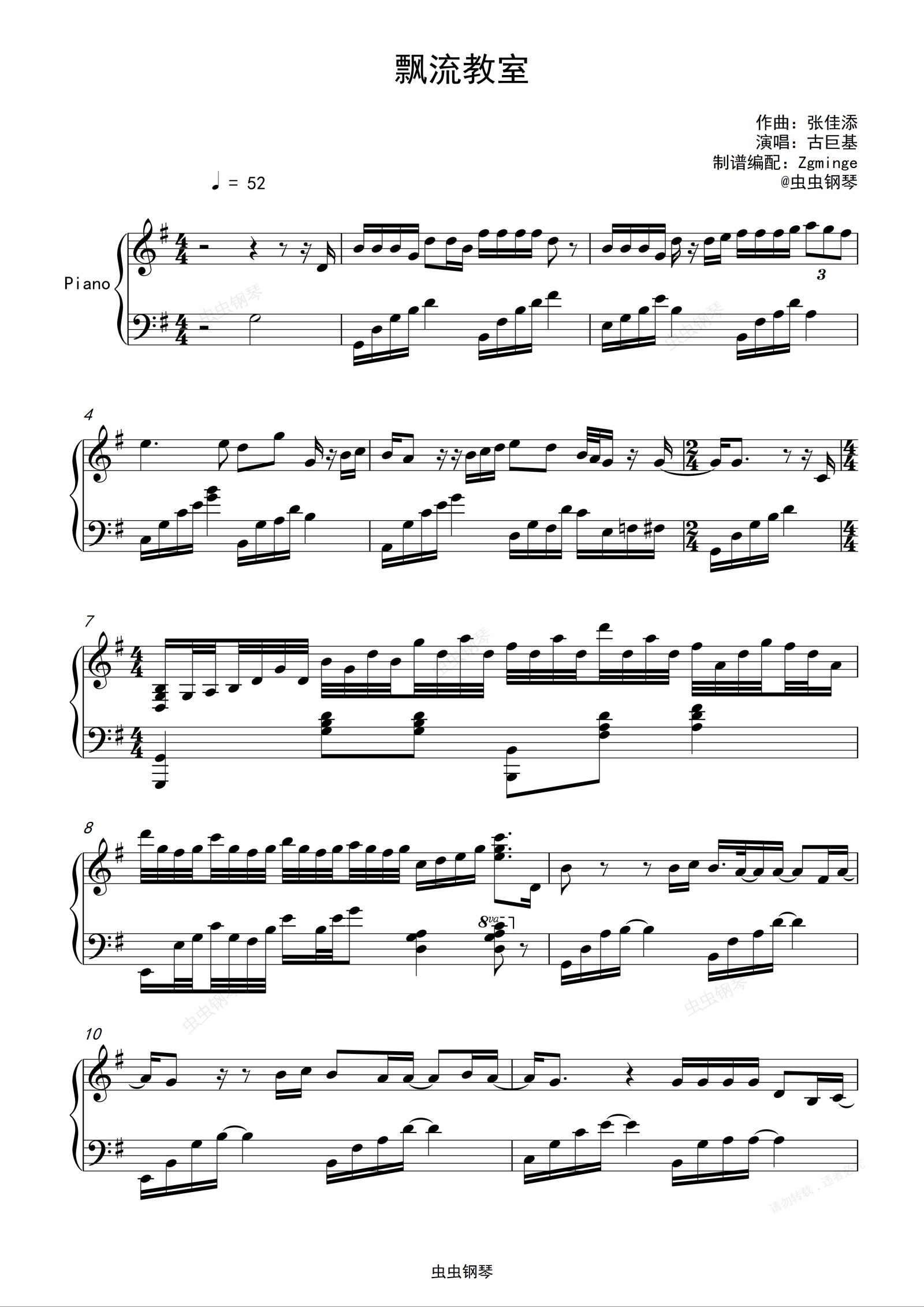 钢琴谱:飘流教室 精编还原弹奏版 中等难度