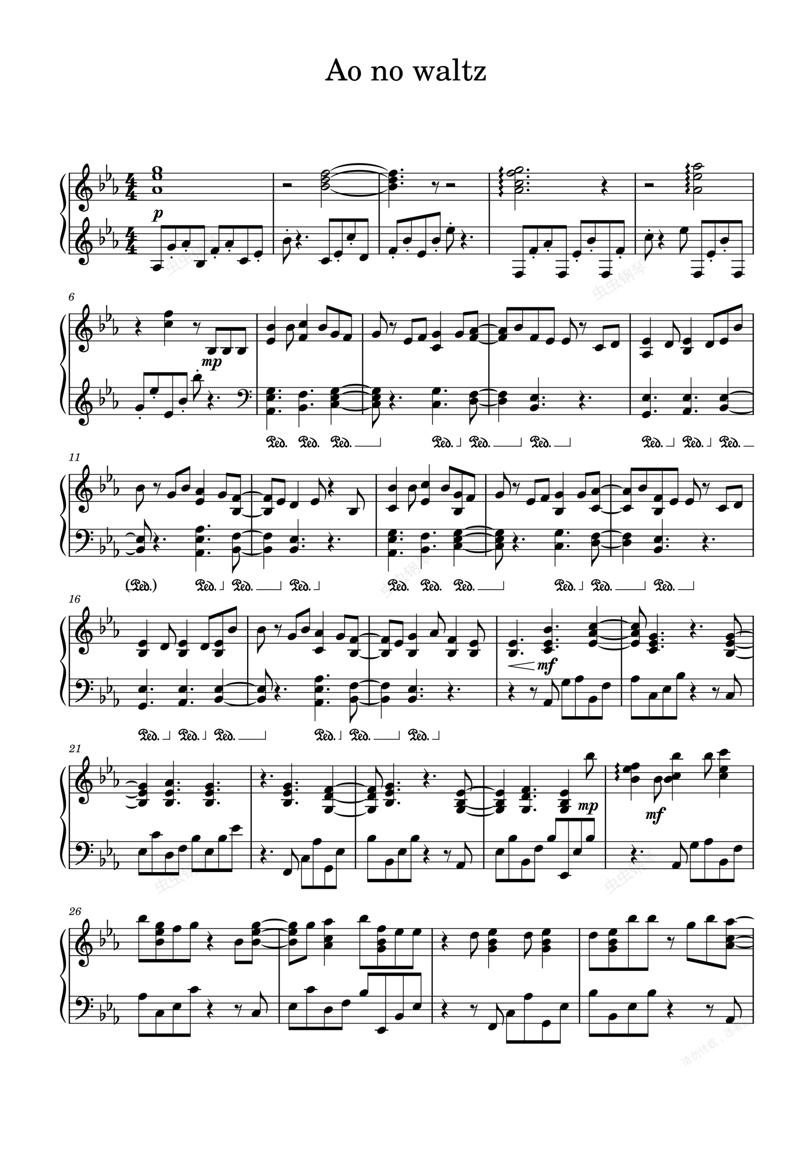 钢琴谱:Ao no waltz/蒼のワルツ(《乔西的虎与鱼》主题曲)