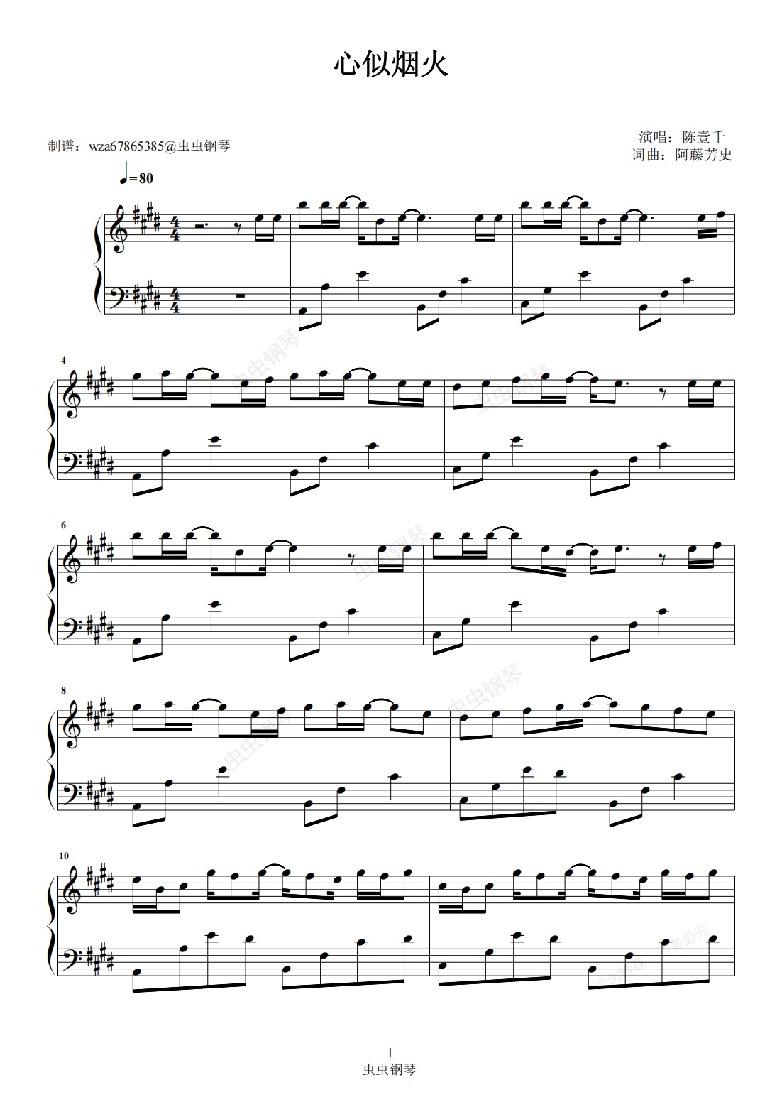 钢琴谱:【心似烟火】阿藤芳史 (Yoshifumi Ato)钢琴谱-陈壹千