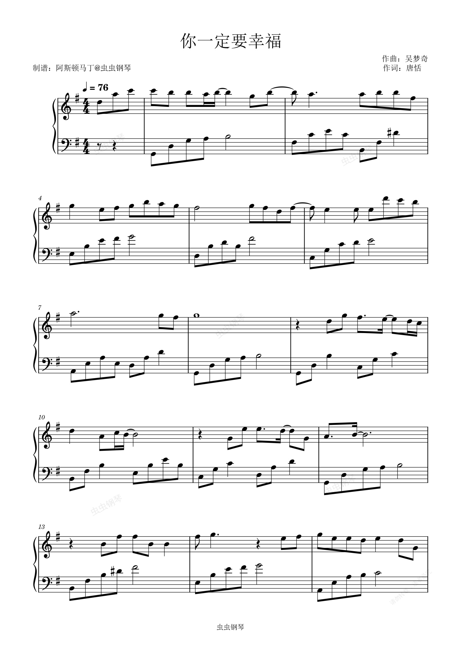 钢琴谱:你一定要幸福 - 何洁【初学简易版】