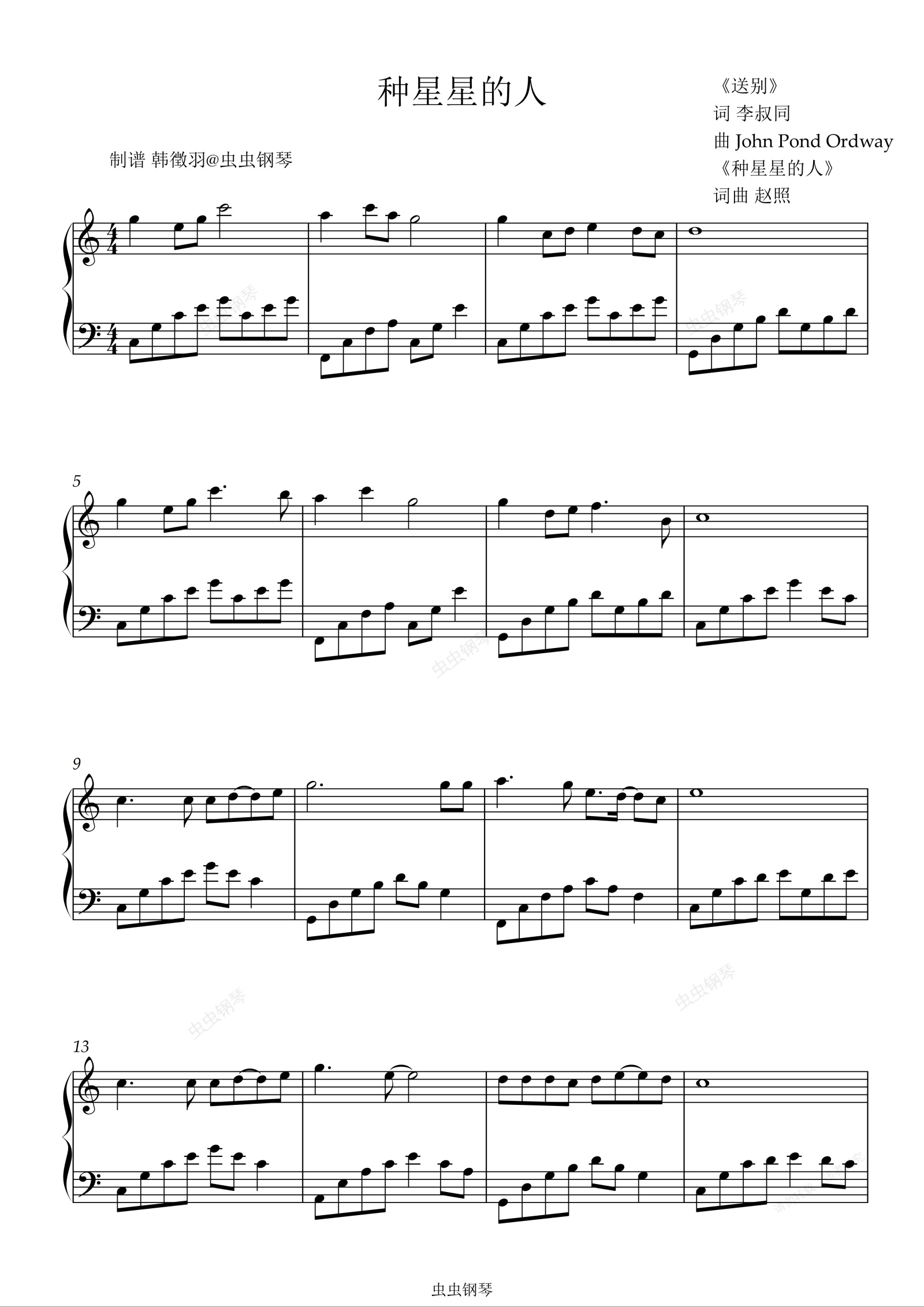 钢琴谱:种星星的人 C调简易版