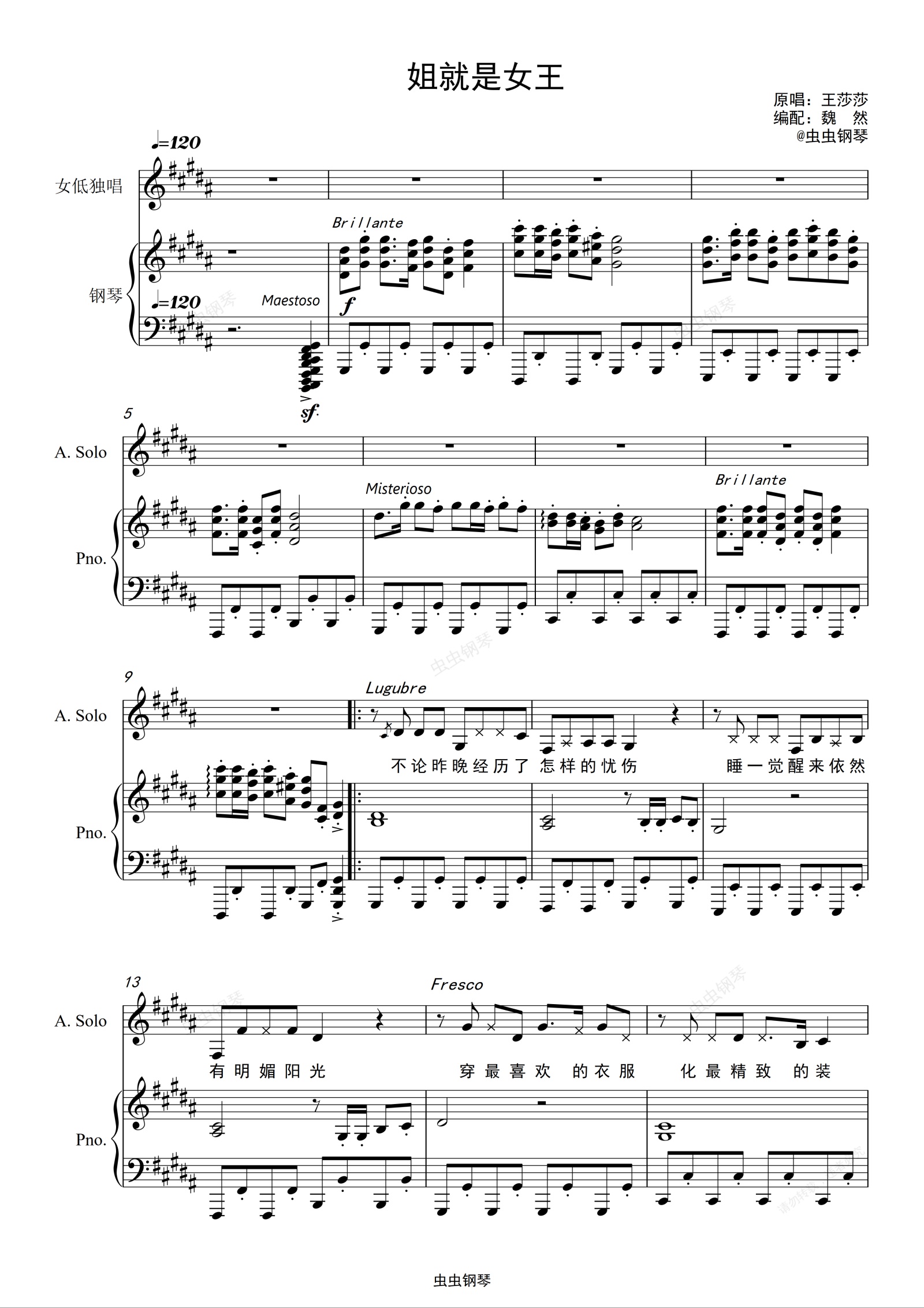 钢琴谱:姐就是女王(神级伴奏谱)——『忧伤歌声』