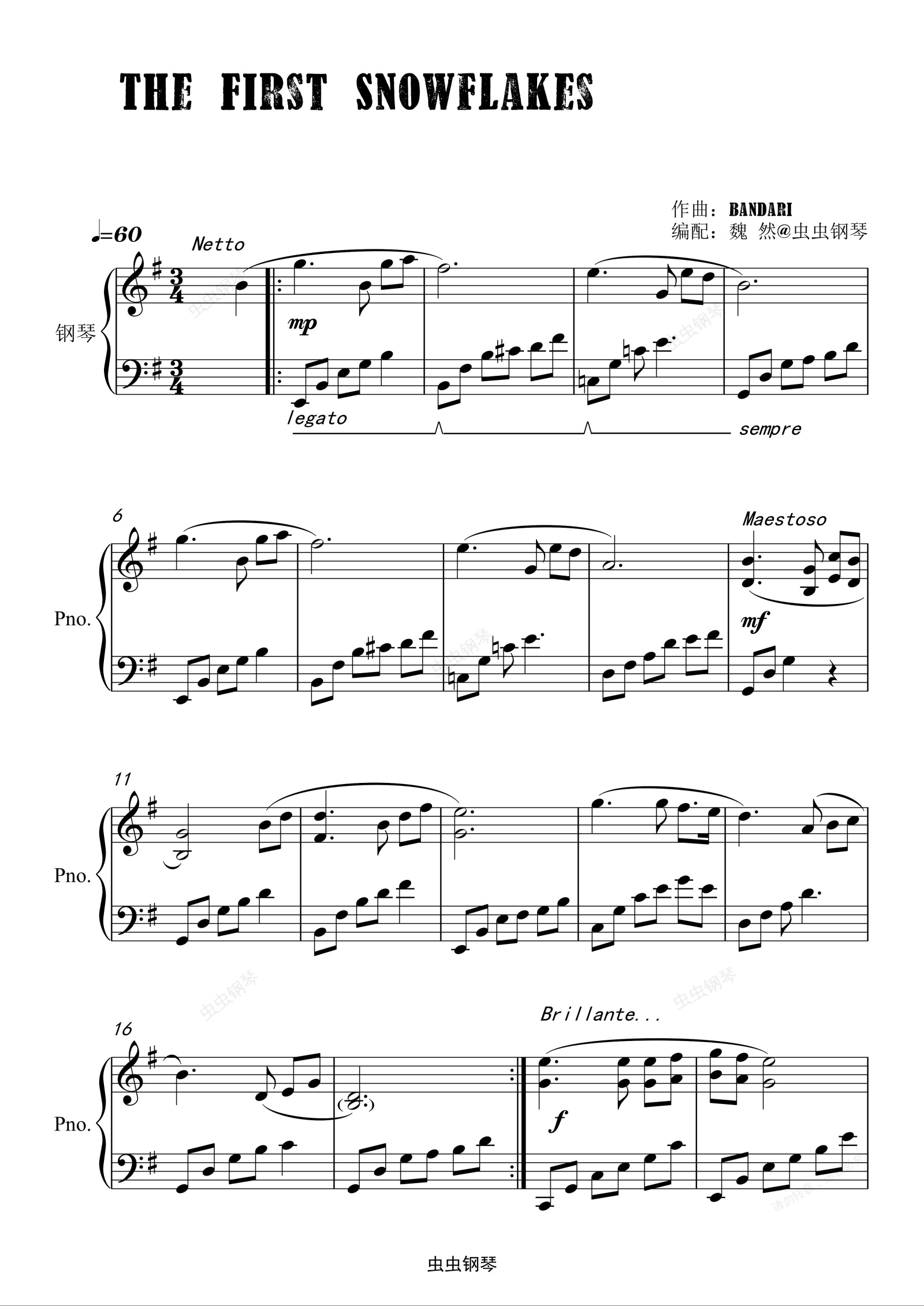 钢琴谱:初雪(The First Snowflakes)G调版——『忧伤歌声』