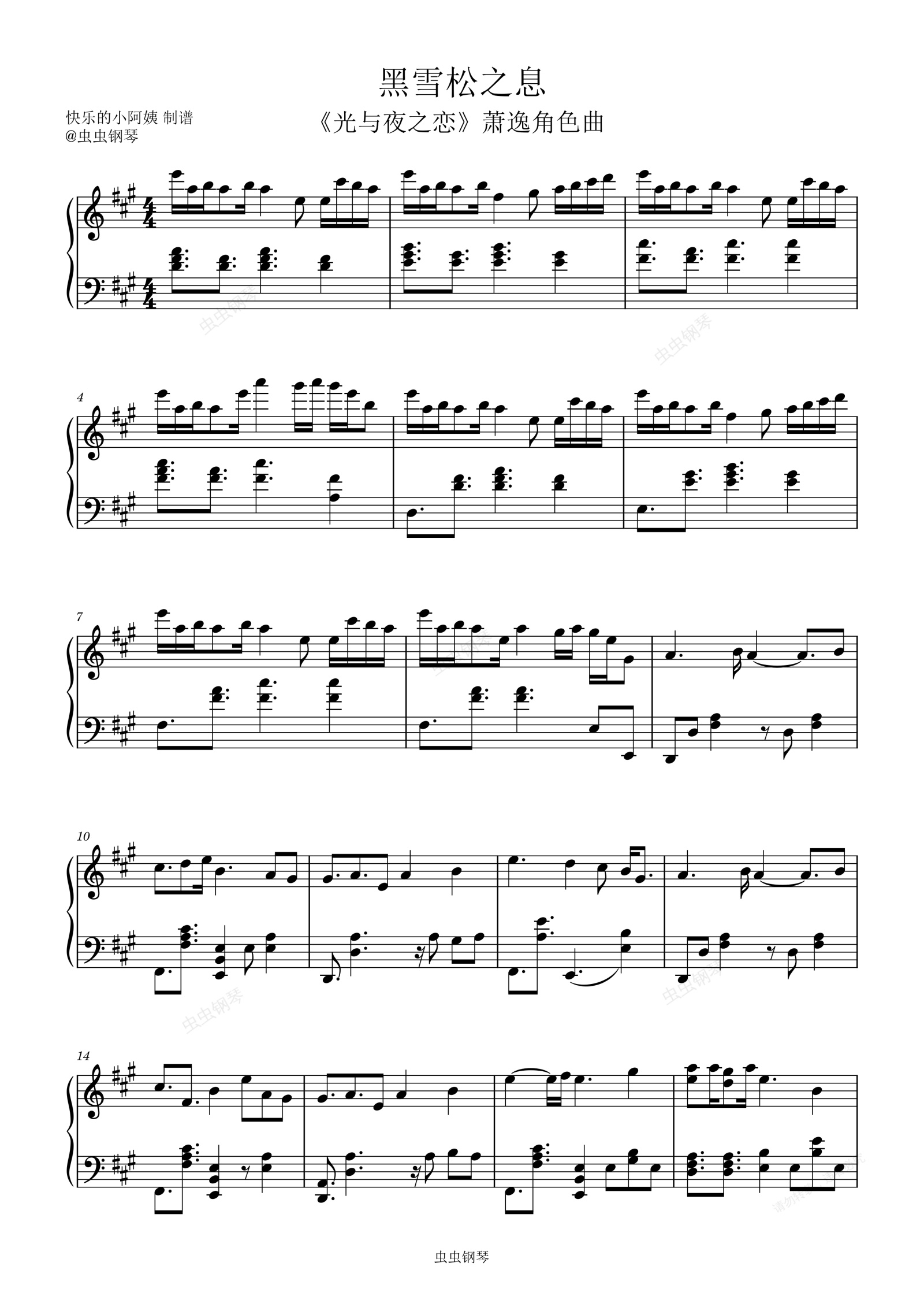 钢琴谱:黑雪松之息-《光与夜之恋》萧逸角色曲