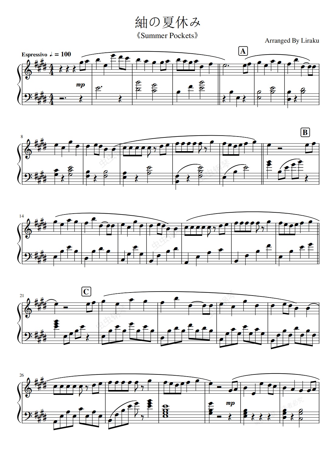 钢琴谱:紬の夏休み钢琴谱