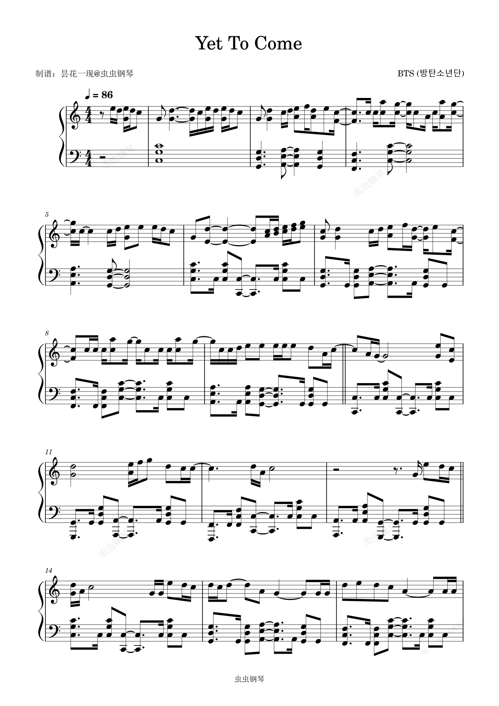 钢琴谱:Yet To Come C大调 BTS (방탄소년단)