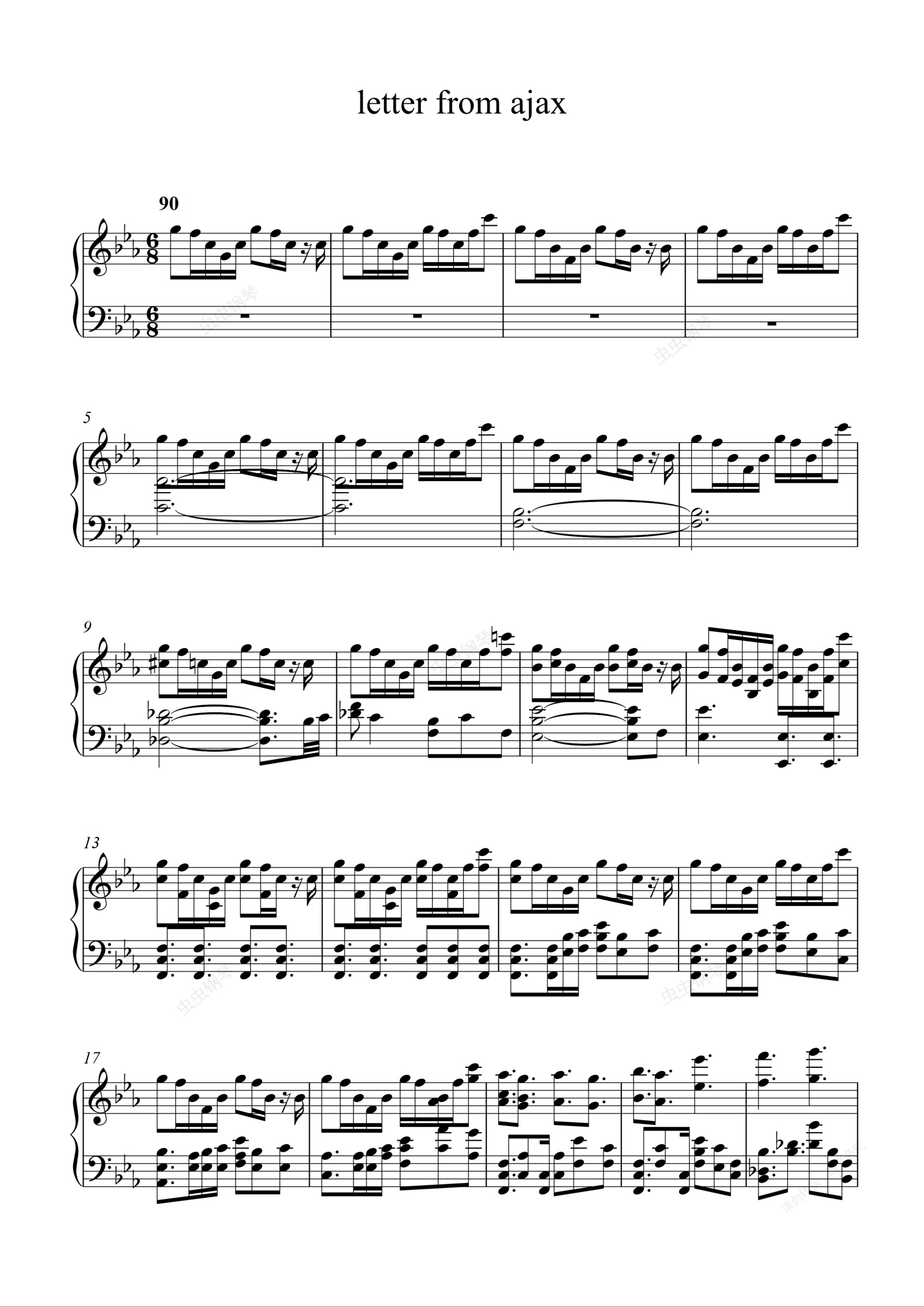 钢琴谱:【原神】埃阿斯的回信|达达利亚 公子角色演示bgm(letter from ajax)