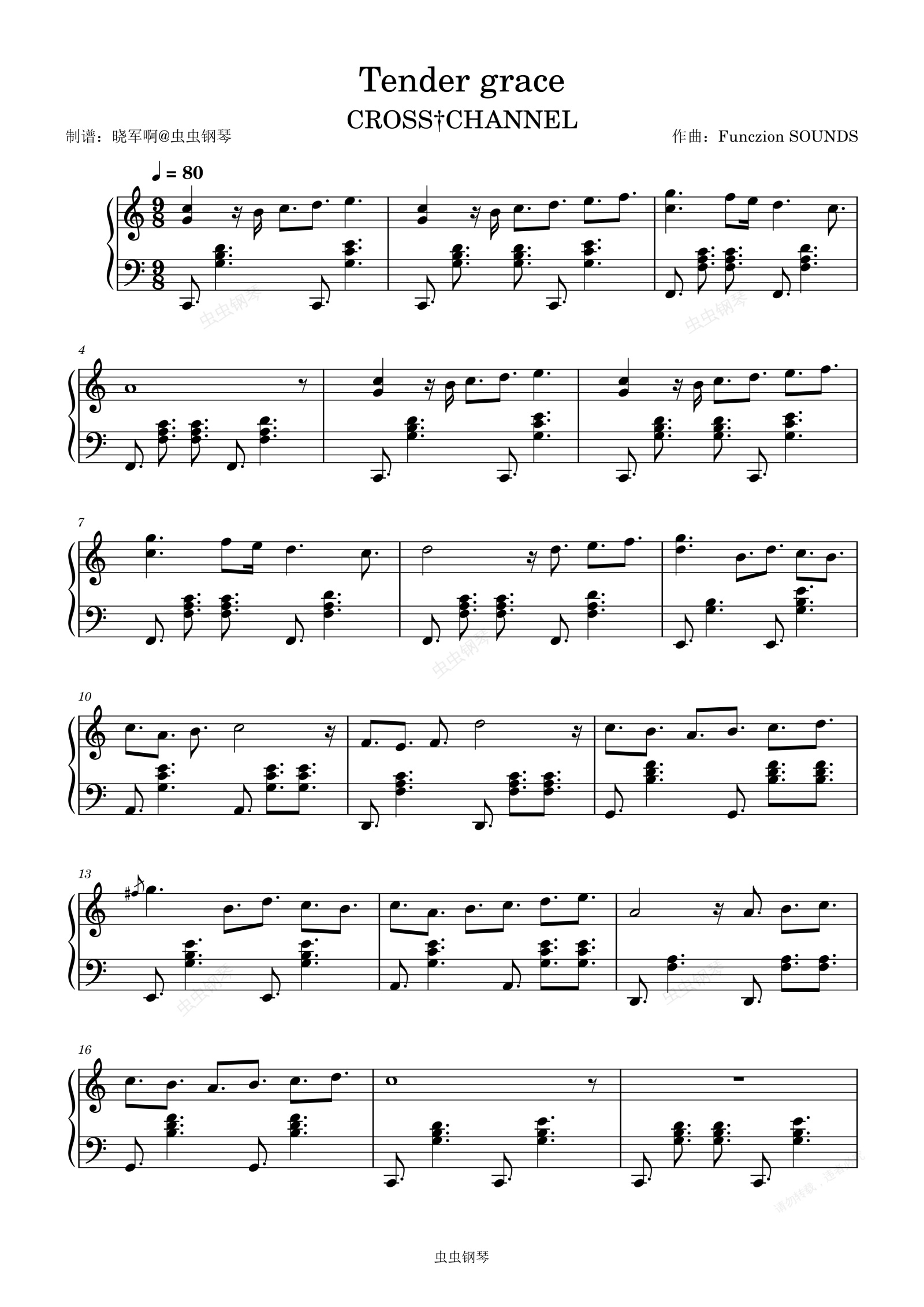 钢琴谱:【CROSS†CHANNEL】Tender grace